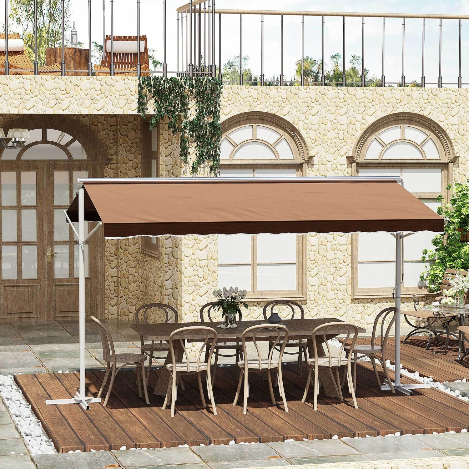 Unsere geräumige Standmarkise dient als die ideale Lösung für die kommenden sonnigen Tage. Ihr flexibler Schattenspender lässt sich einfach im Garten oder als Terrassenüberdachung aufstellen. Schutz vor intensiver UV-Strahlung und Regen genießen Sie dank des PU-beschichteten Polyesterdachs. Mit der Handkurbel können Sie Ihr Sonnendach ganz einfach aufspannen und einrollen. Für erstklassige Stabilität sorgt das hochwertige Gestell aus pulverbeschichtetem Metall. Das witterungsbeständige Material ist robust und langlebig und somit bestens für den Einsatz im Freien geeignet. Damit Sie zu jeder Uhrzeit Schatten genießen können, lässt sich der Neigungswinkel des Markisendachs dem jeweiligen Sonnenstand anpassen. So sind Sie perfekt auf die warmen Tage vorbereitet.