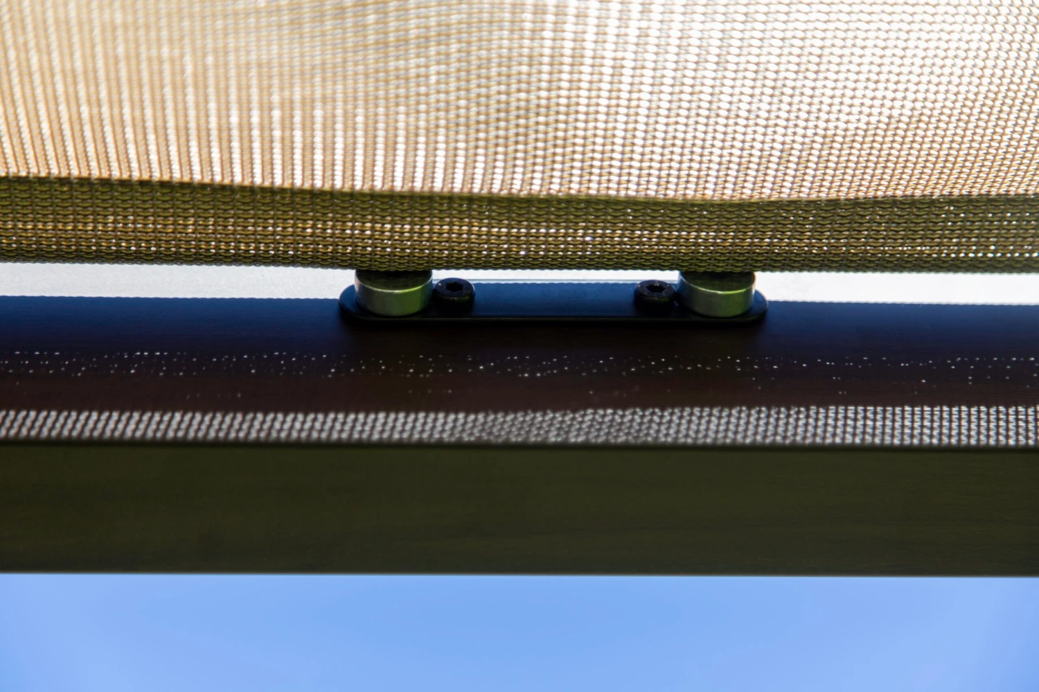 angenehmen Schatten bei sommerlichen Temperaturen. Das Segel ist flexibel nutzbar und kann je nach Bedarf auf- oder zugezogen werden.