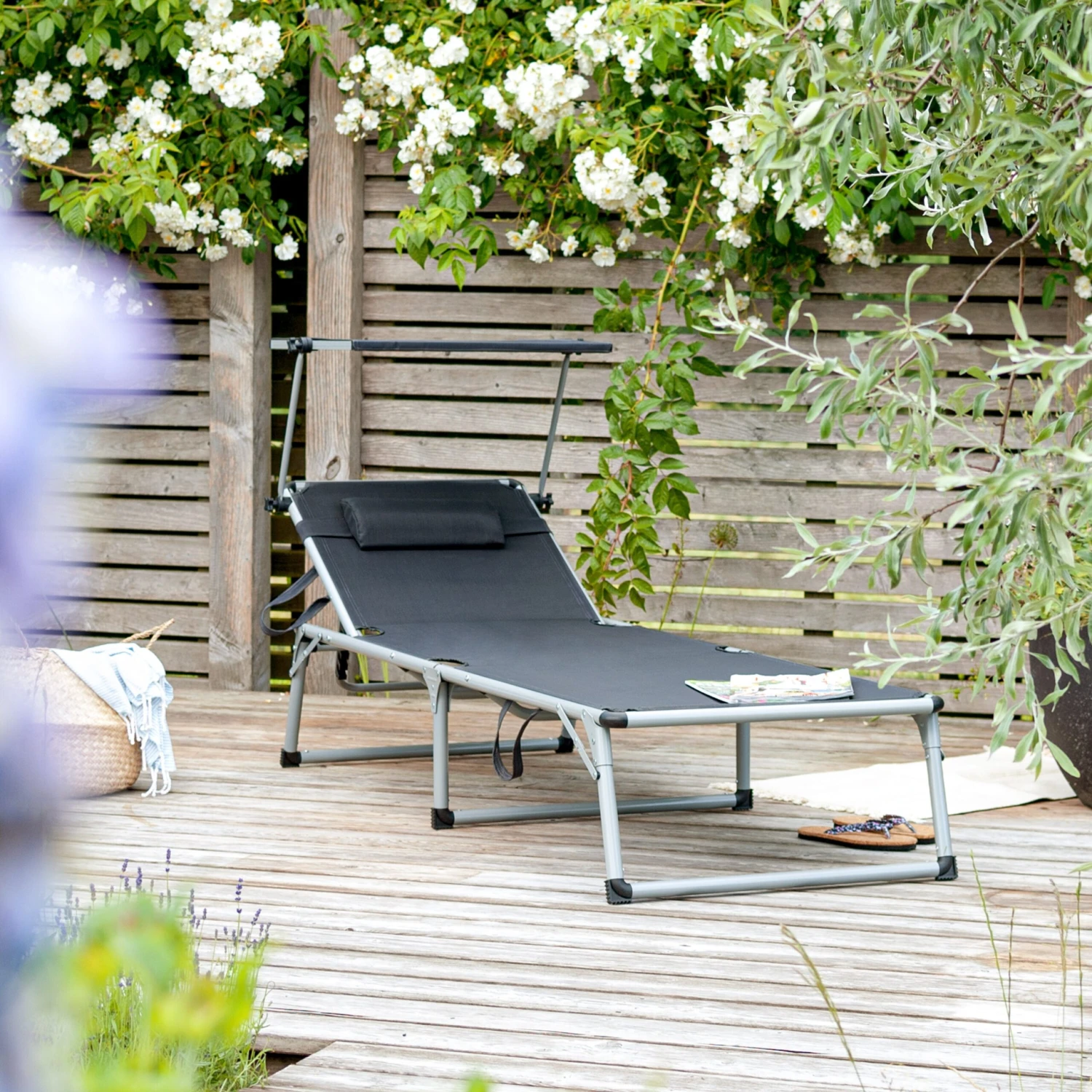 Unter dem verstellbaren Sonnendach sind Sie geschützt und können ein Buch lesen oder sich einfach ein bisschen entspannen.