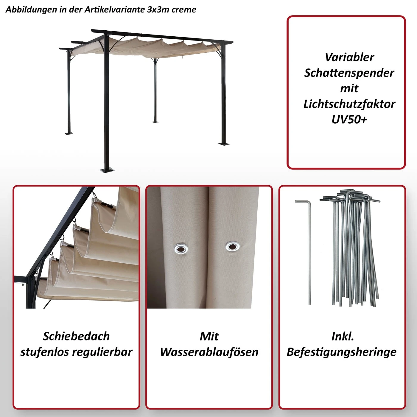 – Lieferumfang: 1x Pergola mit Schiebedach