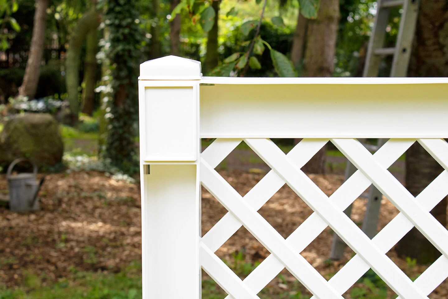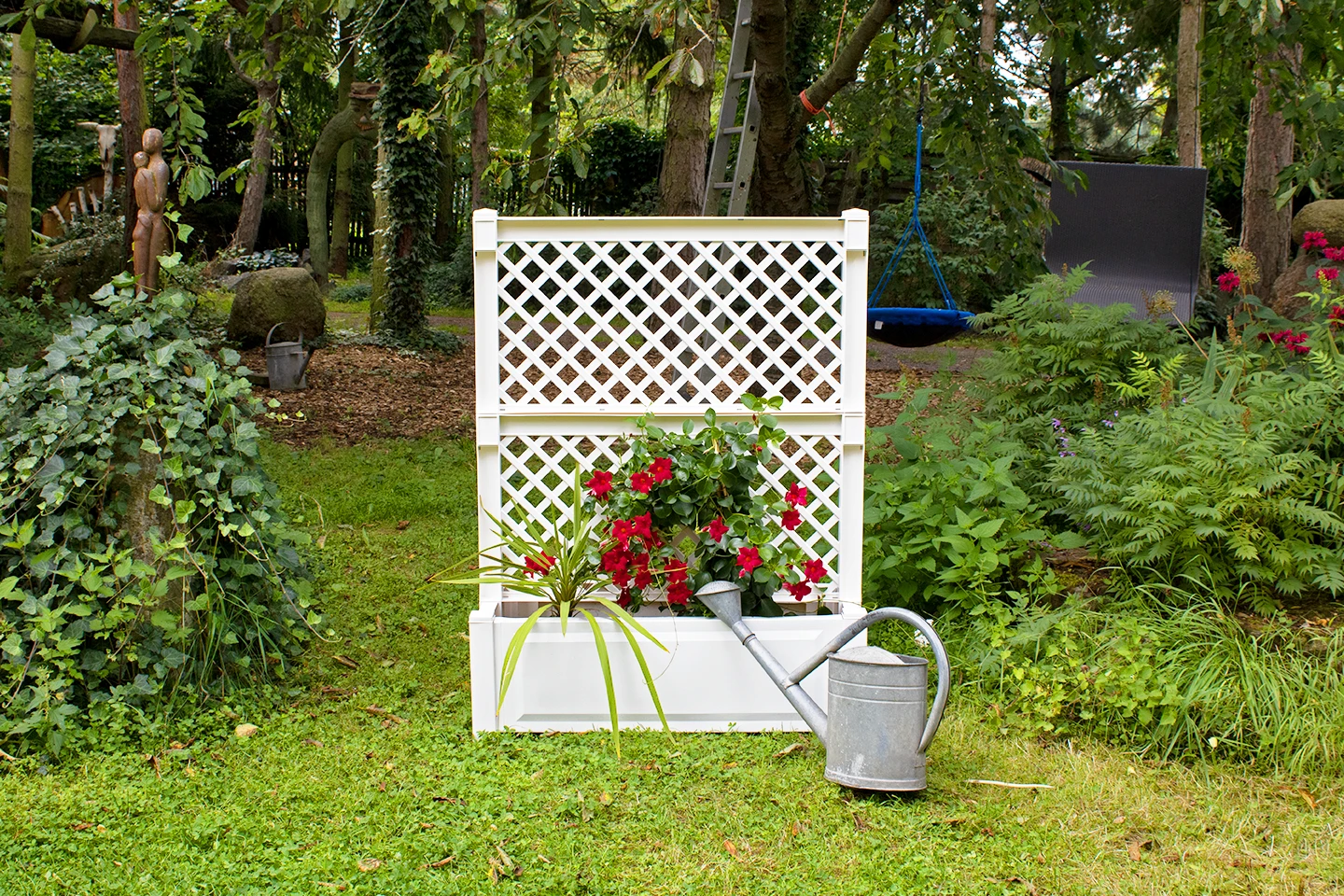 Das Spalier ermöglicht eine beidseitige Begrünung. Hergestellt aus 100 % Kunststoff, UV-stabil und wetterfest.
