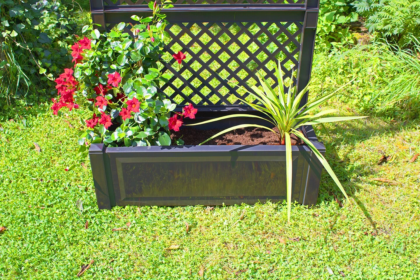 Mit farbenfrohen Kletterpflanzen bepflanzt, setzt dieser Pflanzkasten mit Rankgitter Ihre Terrasse in Szene und schafft einen dekorativen Sicht- und Windschutz! Aufgrund seiner leichten Montage und der Vielfalt dieser Serie ist einer Kombination mit anderen Teilen keine Grenzen gesetzt. Hergestellt aus schlagfesten, UV-beständigem Vollkunststoff. Lieferbar in den Farben weiss, grün und anthrazit.
