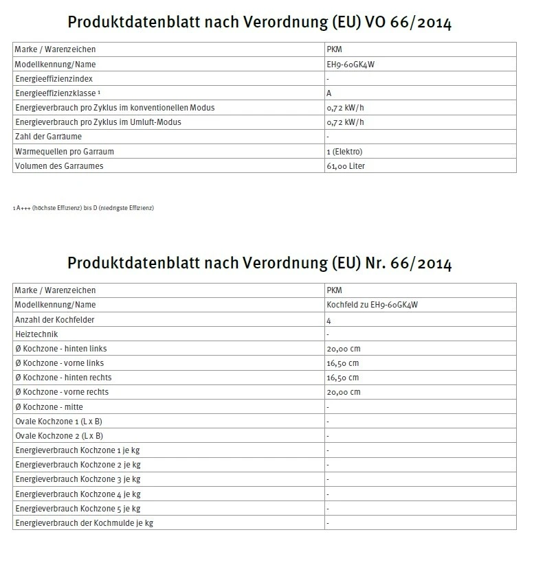 Nutzbares Volumen des Garraums: 61,00 Liter