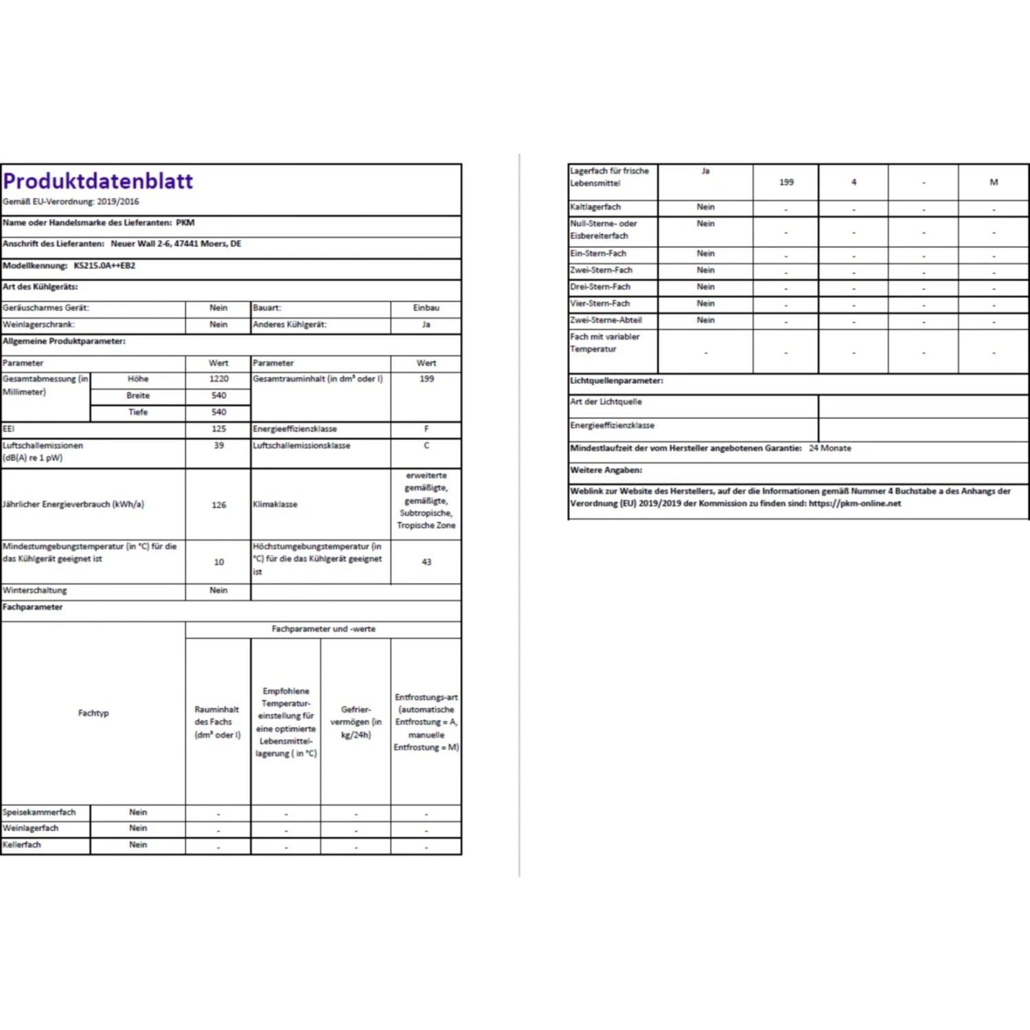 PKM Einbau-Vollraumkühlschrank KS215.0A++EB2 integrierbar
