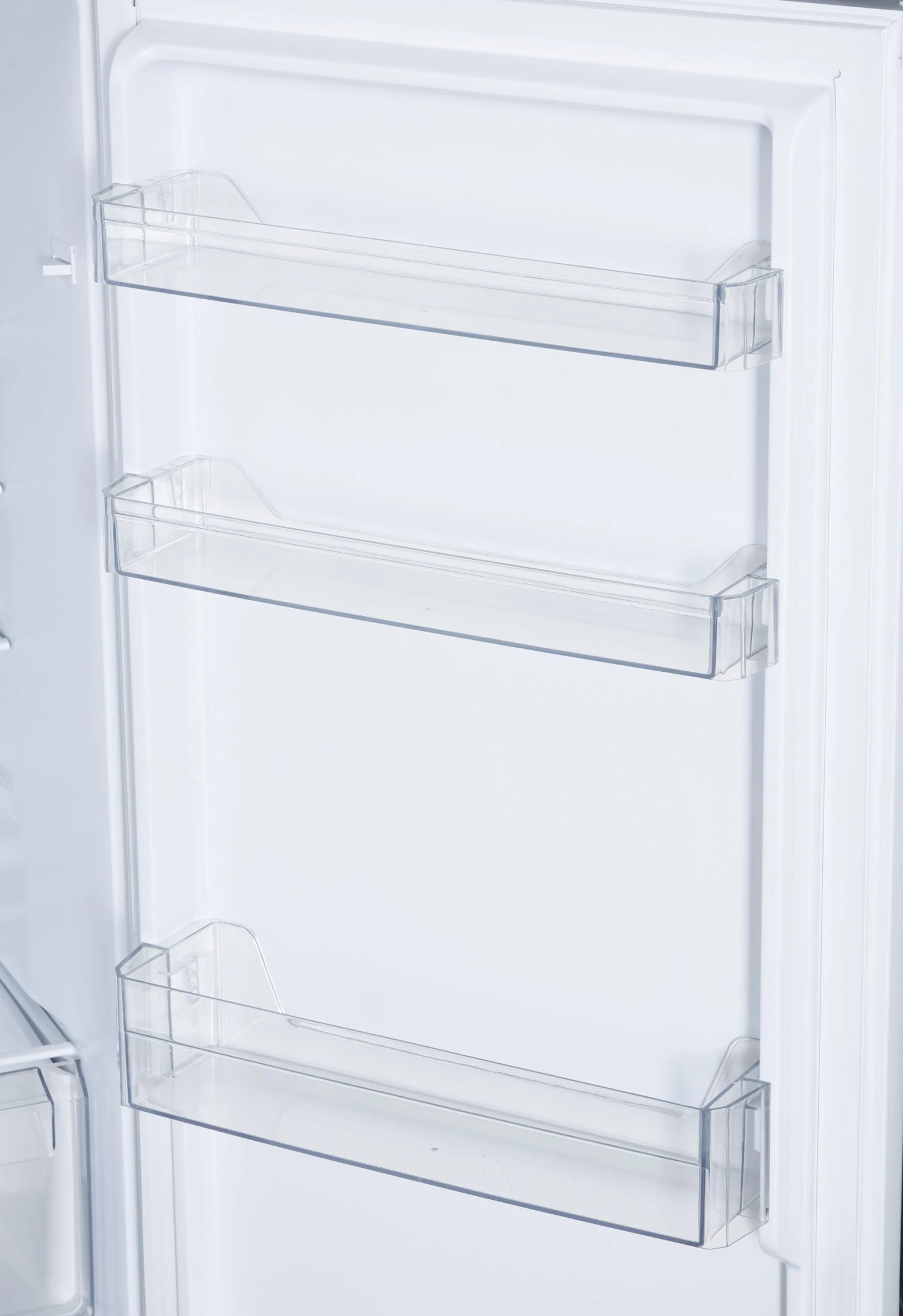 Drei Türfächer bieten Platz für Flaschen und Saucen. Mit den zwei verstellbaren Glasebenen hat ein dein Haushalt mehr als genug Stauraum im Kühlbereich. Inklusive Gemüseschublade für frische Lebensmittel.