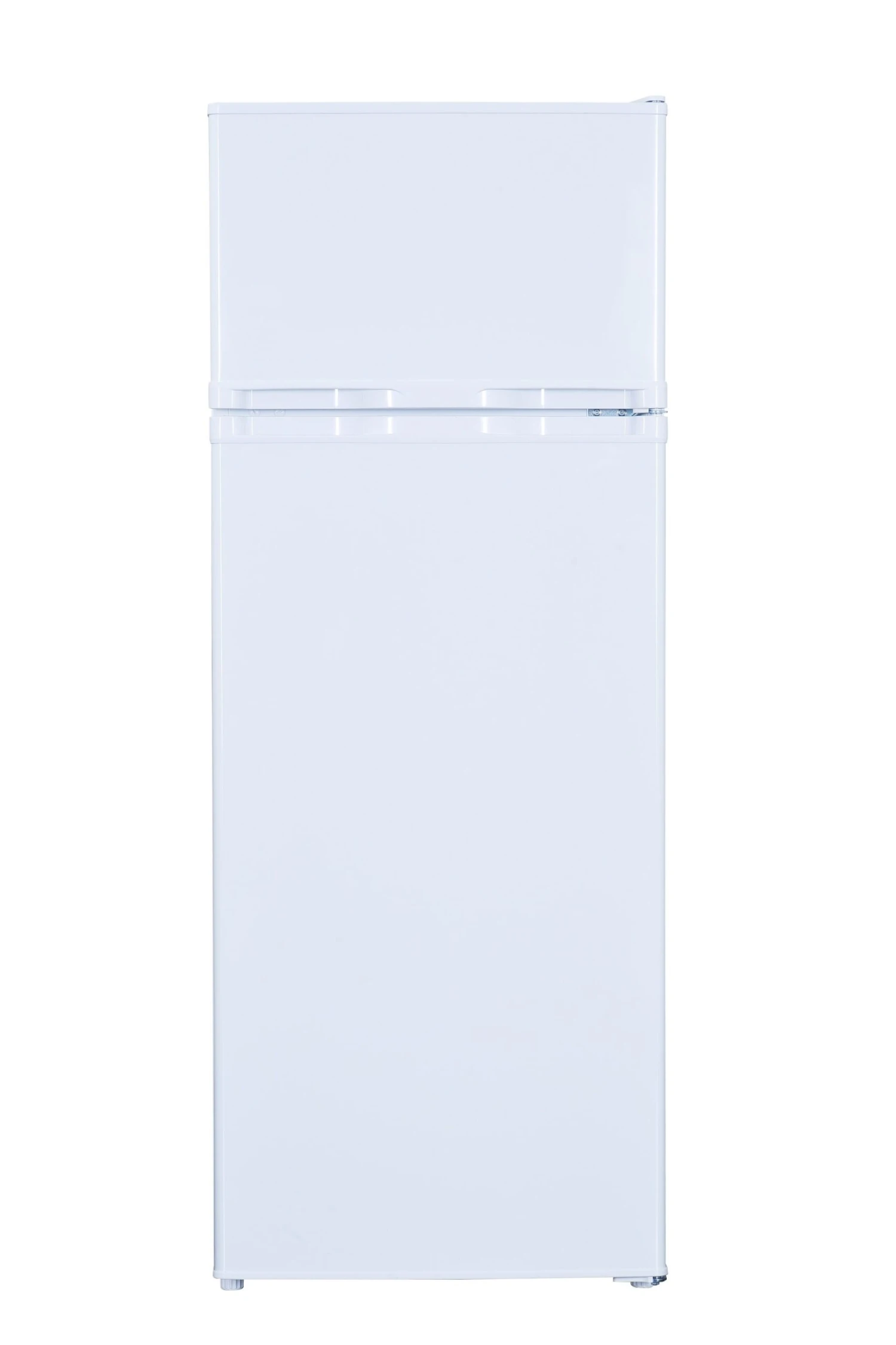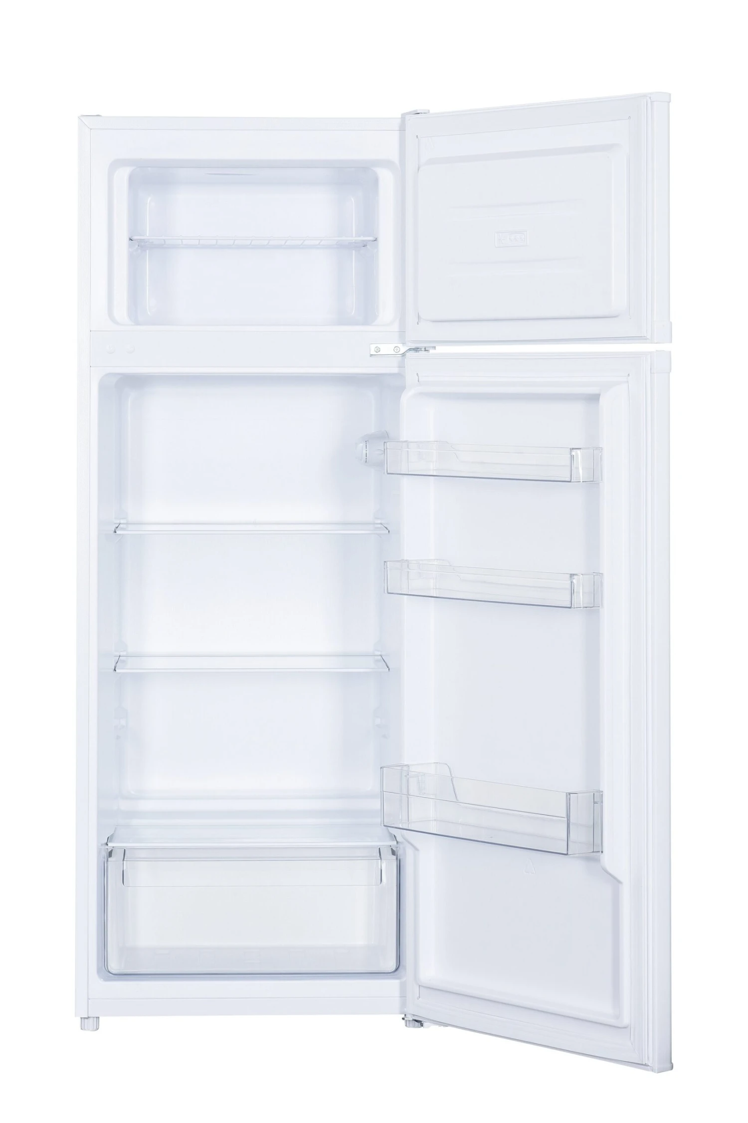 Front und Seiten lackiert in edlem weiß. Mit seiner zeitlosen Form passt der Kühlschrank in jeden Haushalt. Zwei Türen mit integrierten Griffen unterteilen das Gerät in Kühl- und Gefrierbereich.