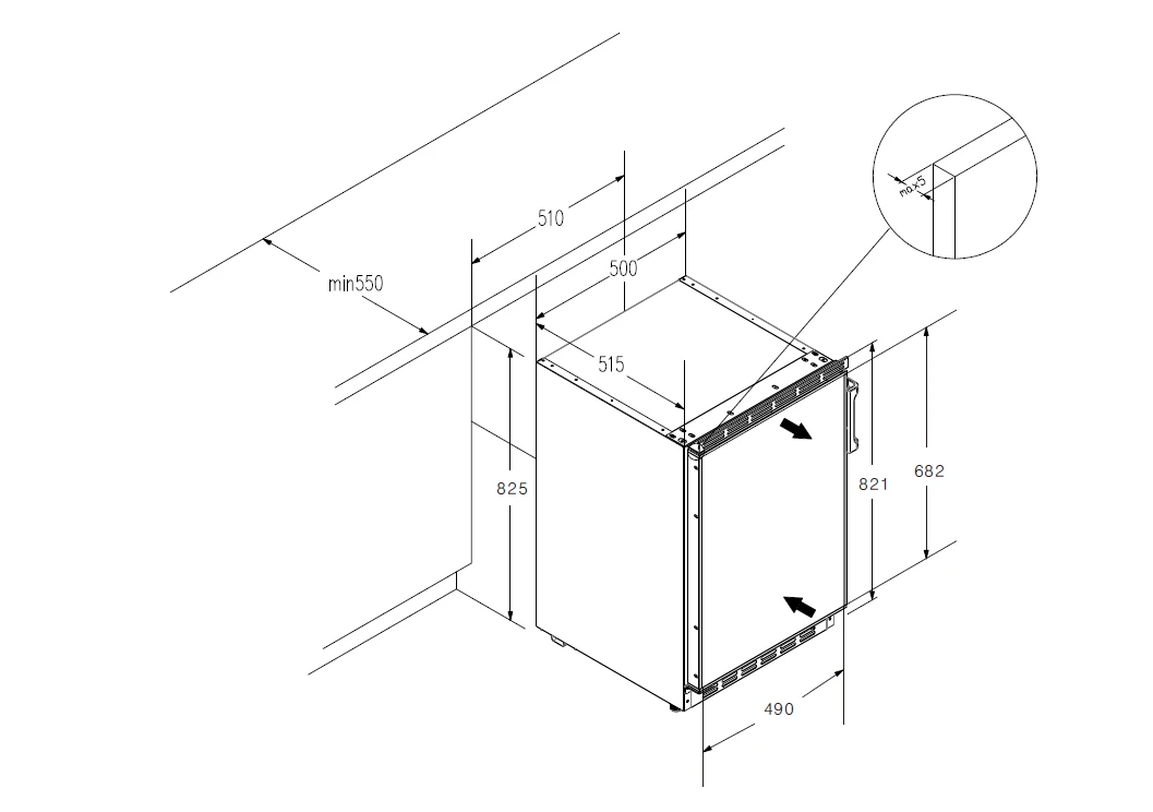 Durch den wechselbaren Türanschlag kann der Kühlschrank individuell auf Ihre Küche abgestimmt werden.