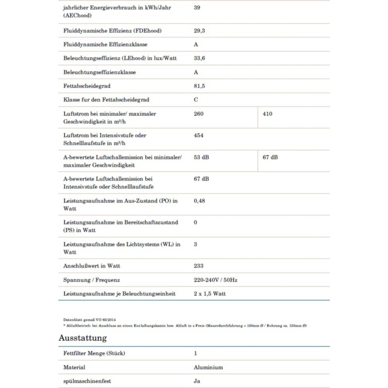 jährlicher Energieverbrauch (AEChood): 39,0 kWh/Jahr