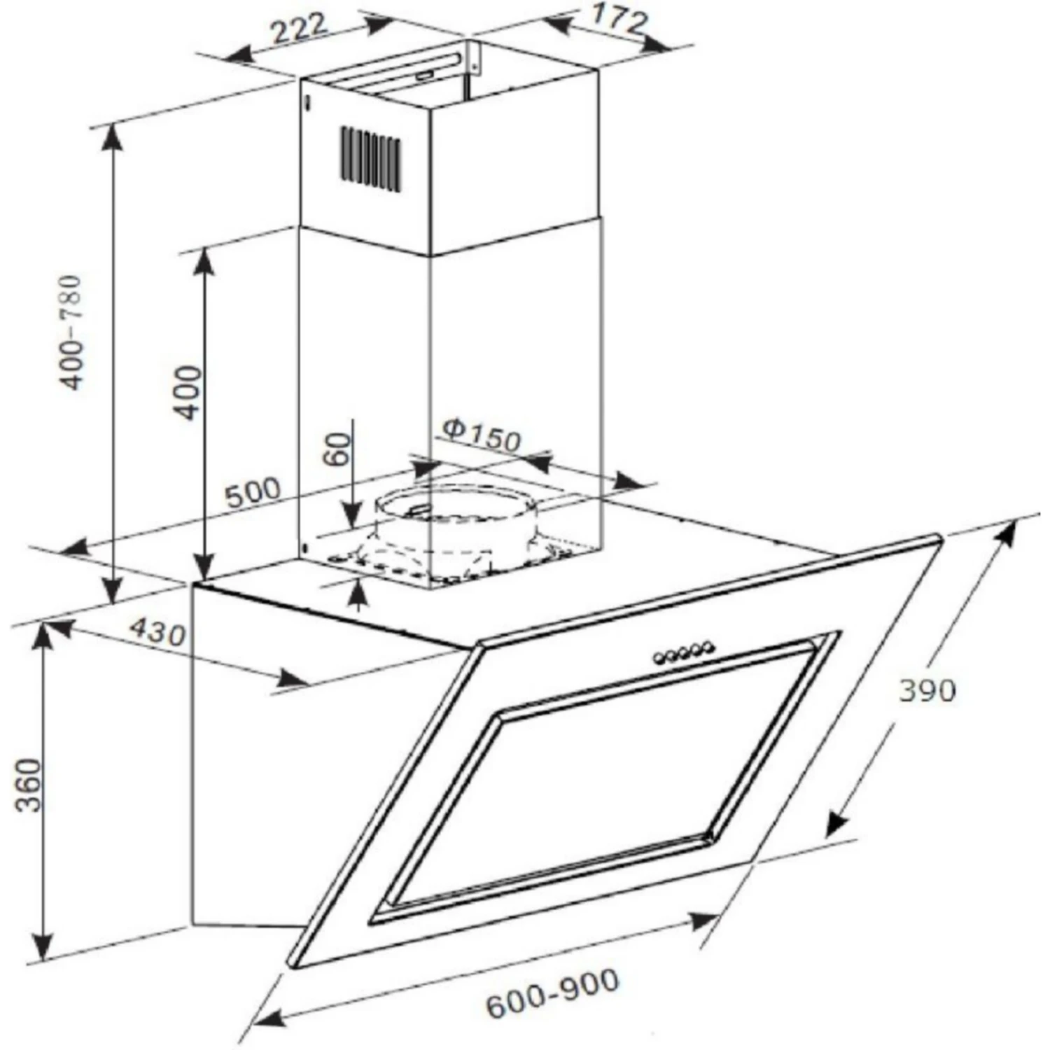 PKM S7-90ABTH Dunstabzugshaube 90cm schwarzes Glas