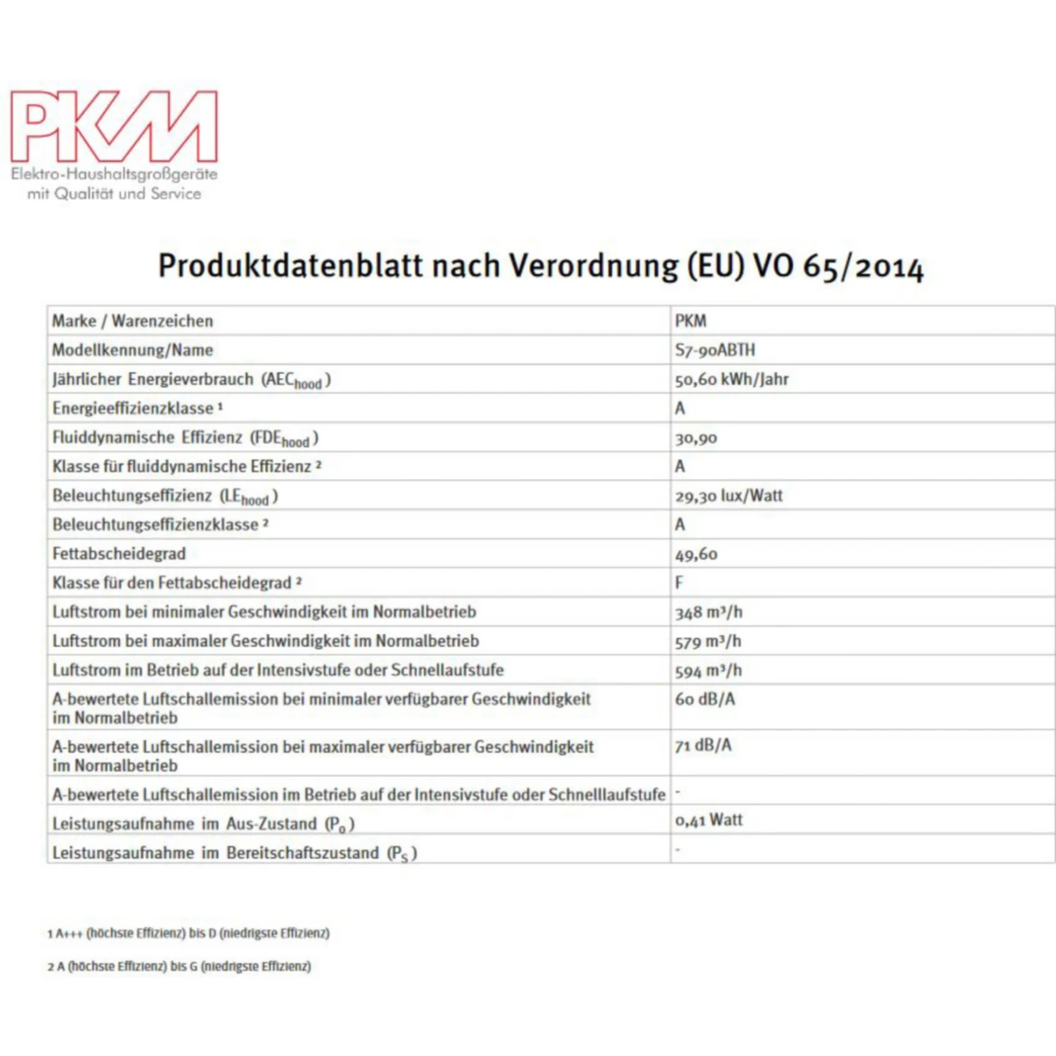 jährlicher Energieverbrauch (AEChood): 50,6 kWh/Jahr