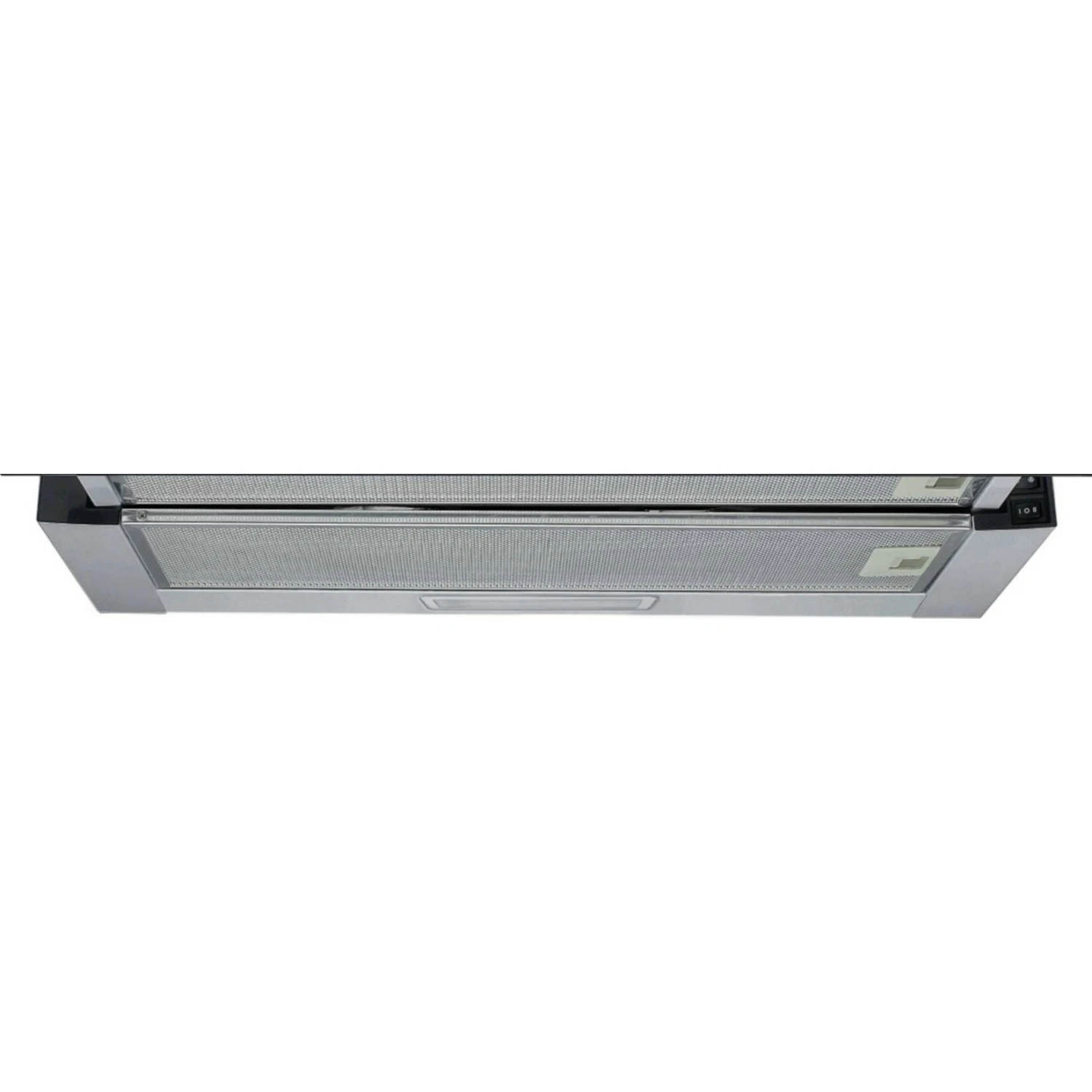 Einbau-Dunstabzugshaube ausziehbar aus lackiertem Stahl mit Edelstahlblende und zwei Leistungsstufen. Inkl. 2 waschbaren Metallfettfiltern (Spülmaschinenfest).