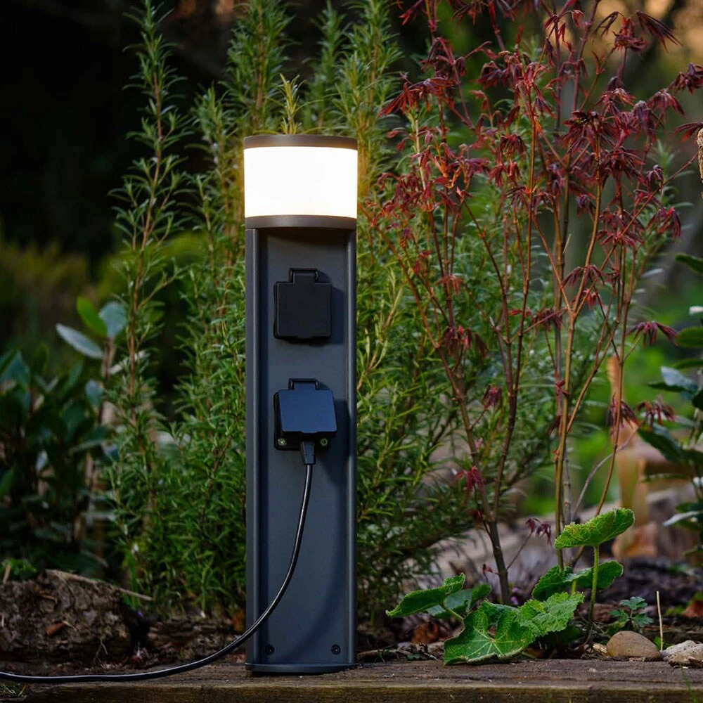 Eine zeitgemäße und dezente Außenbeleuchtung mit mit einem hohen Maß an Funktionalität: Die Rook O Poller-Außenleuchte mit 46,5cm Höhe ist die richtige Wahl. Das robuste Aluminiumgehäuse in klarer Form umfasst filigran den weißen Diffusor. Das Anthrazit der Leuchte unterstreicht den Charakter der Leuchte eindrucksvoll. Ausgestattet mit einer G9 Fassung und weißem Diffusor, sorgt es für gleichmäßig und rundum gestreutes Licht. Das besondere Highlight dieser Leuchte sind die zwei eingebauten spritzwassergeschützten Steckdosen.