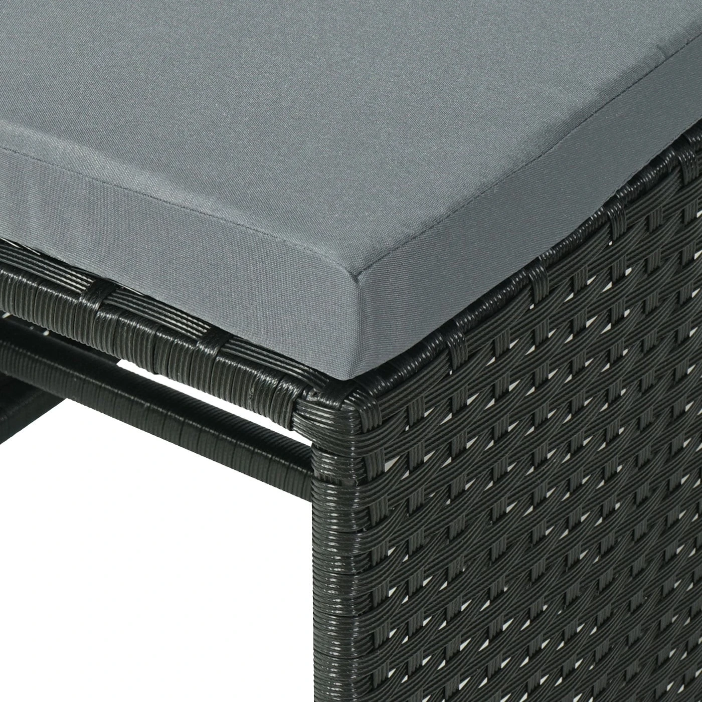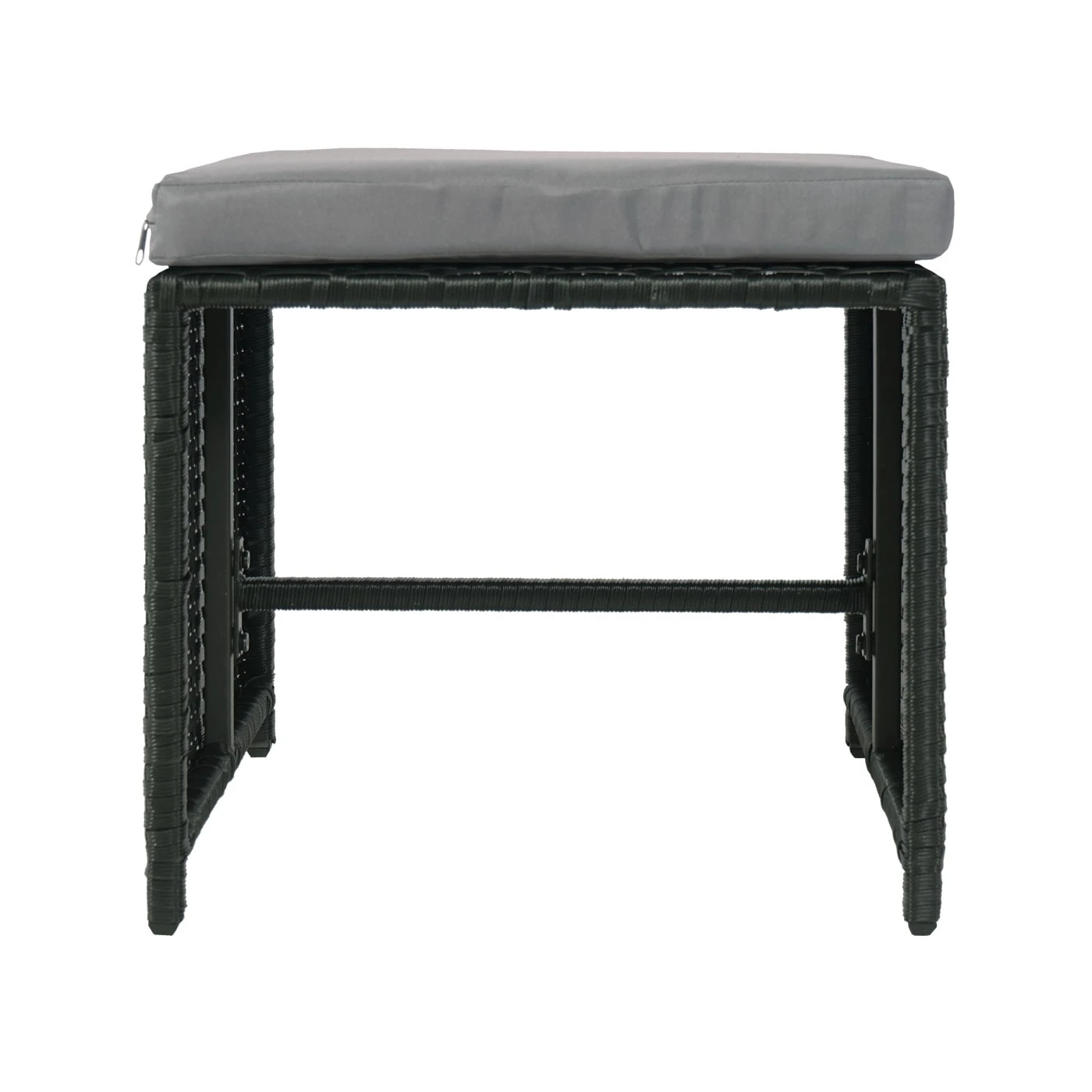 – Dieser modern und schlicht gehaltene Sitzhocker zeichnet sich durch seinen Poly-Rattan Geflecht aus und fügt sich nahtlos auf jedem Balkon oder Terrasse ein.