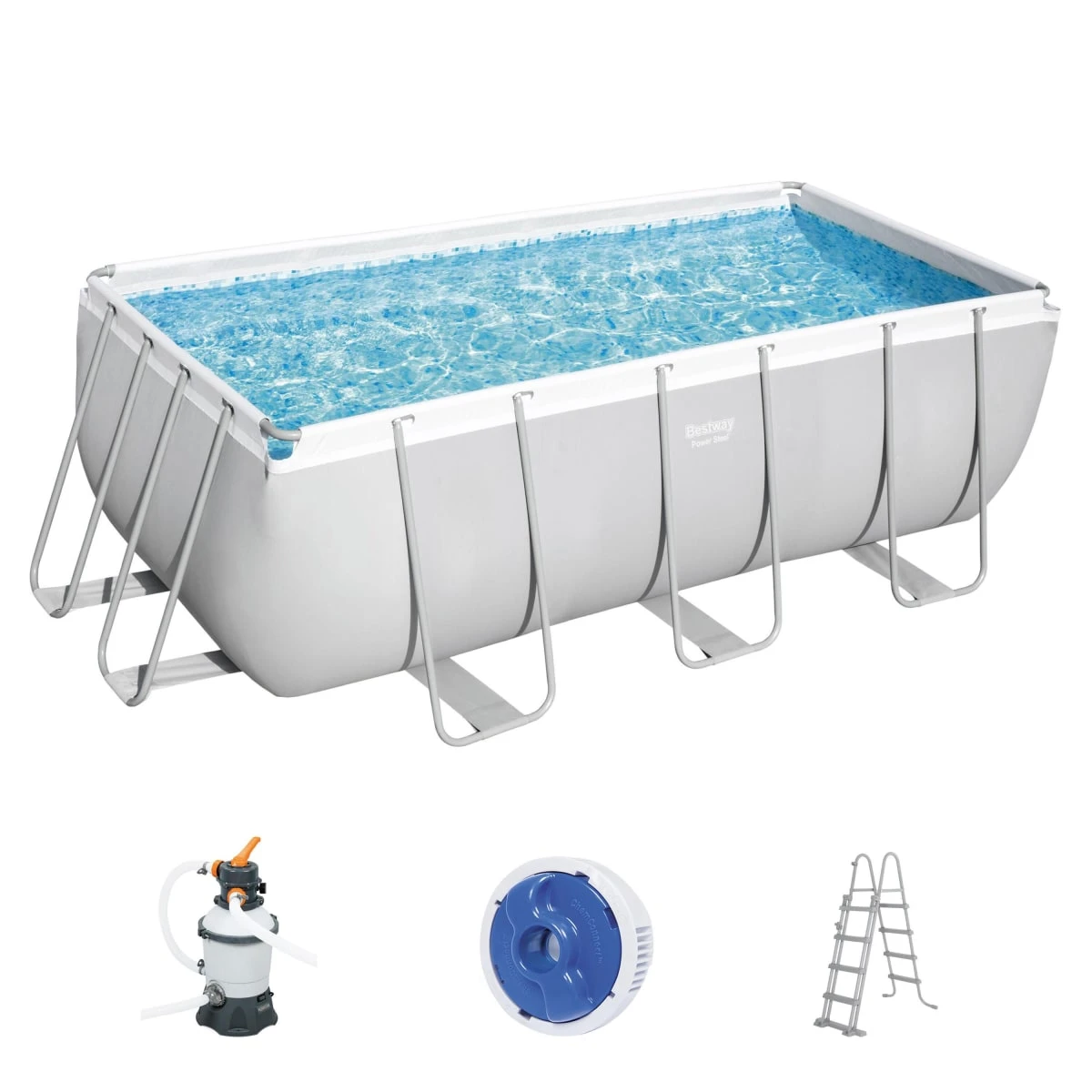 - Inklusive Flowclear Filterpumpe, Filterkatusche, Sicherheitsleiter und ChemConnect Chemikaliendosierer