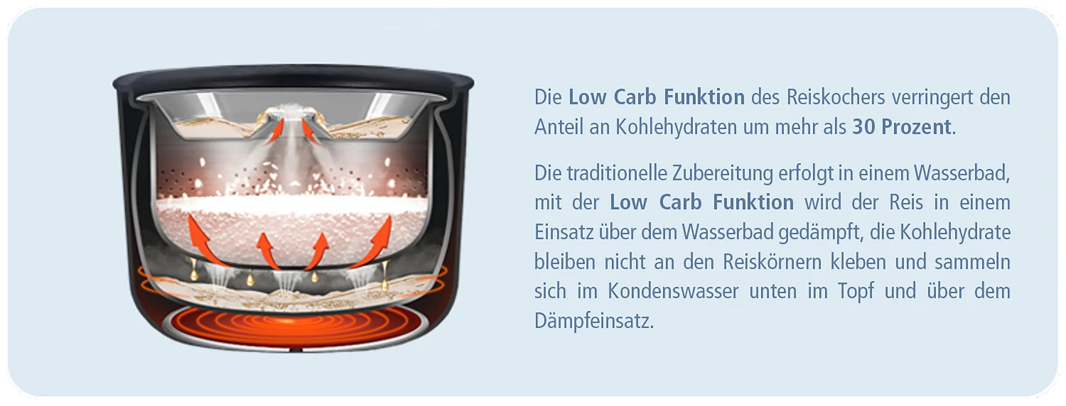 Besonders innovatives „Low Carb Programm, dass dem Reis bis zu 30% der enthaltenen Kohlenhydrate entzieht.