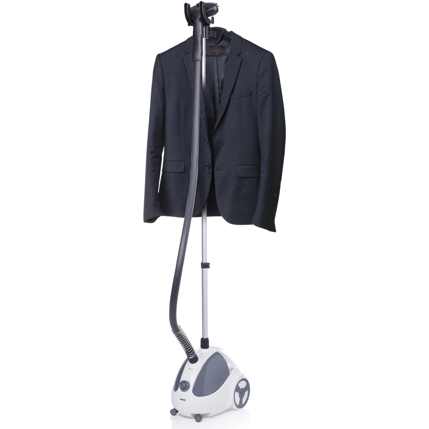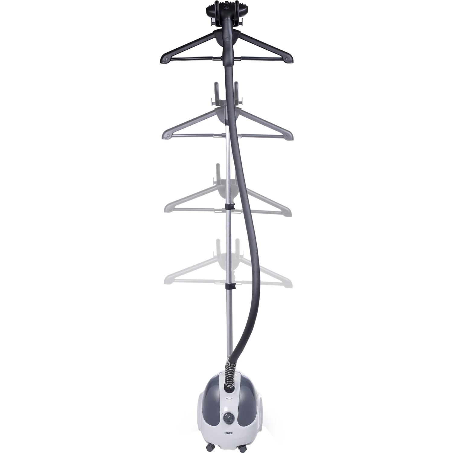 Mit dem Princess Kleidungsdämpfer 332834 lassen sich einfach und effektiv Kleidungsstücke, Vorhänge und Polstermöbel dampfreinigen. Der Textil-Dampfreiniger braucht nur 45 Sekunden, um sich vollständig aufzuheizen. Falten, Hausstaubmilben und Gerüche gehören mit nur einer Brise heißer Luft der Vergangenheit an. Der Kleidungsdämpfer hat eine praktische Kleiderstange, die nicht nur höhenverstellbar ist, so dass Blusen oder lange Kleider gleichermaßen einfach mit Dampf behandelt werden können, sondern kann auch in der Weite auf Blusen oder Tops angepasst werden. Der abnehmbare Wasserbehälter hat 1,8 l Fassungsvermögen und lässt sich leicht nachfüllen. Durch die Schwenkräder und eine Kabelänge von 1,9 m kann der Kleidungsdämpfer problemlos bewegt und benutzt werden. Der Princess-Textil-Dampfreiniger kann auch empfindliche Stoffe wie Seide oder Wolle auffrischen oder glätten. Auch Plätze, an denen sich viele Bakterien ansammeln und die schwer zu reinigen sind, wie Hundebetten, Kopfkissen und Plüschtiere, lassen sich auch mit der flexiblen Düse reinigen. Der heiße Dampf tötet nahezu alle Bakterien ab und beseitigt selbst den hartnäckigsten Hundegeruch. Der Bekleidungsdämpfer schaltet sich nach 8 Minuten automatisch ab und ist damit auch sicher im Gebrauch. Für weitere Sicherheit sorgen der Trockengehschutz und der Überhitzungsschutz.