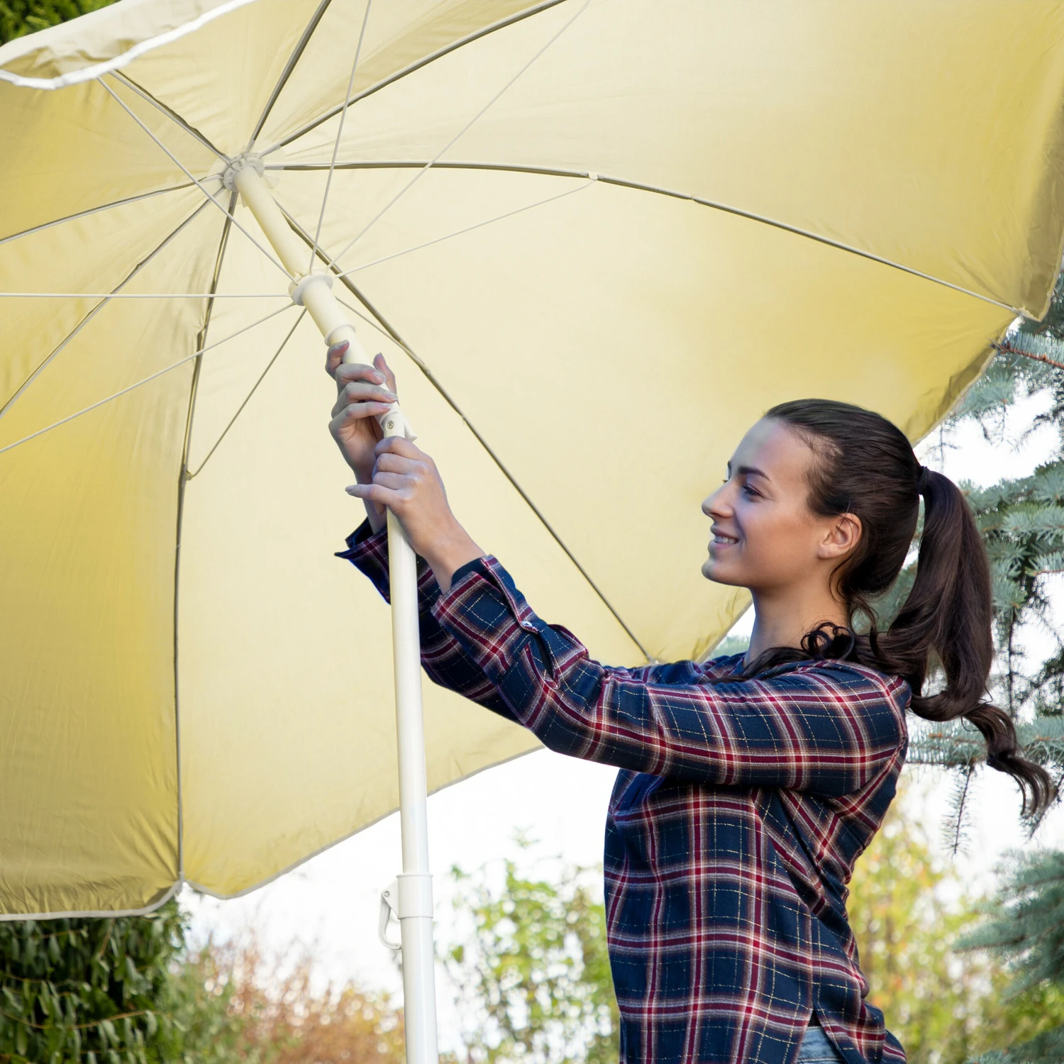 Der Sonnenschirm überzeugt durch sein klassisches Design und macht im Garten, auf dem Balkon oder der Terrasse eine gute Figur. Der höhenverstellbare Sonnenschutz schafft dank seines breiten Schirms einen großen Schattenplatz und schützt dank der Neigefunktion auch vor tiefstehender Sonne.