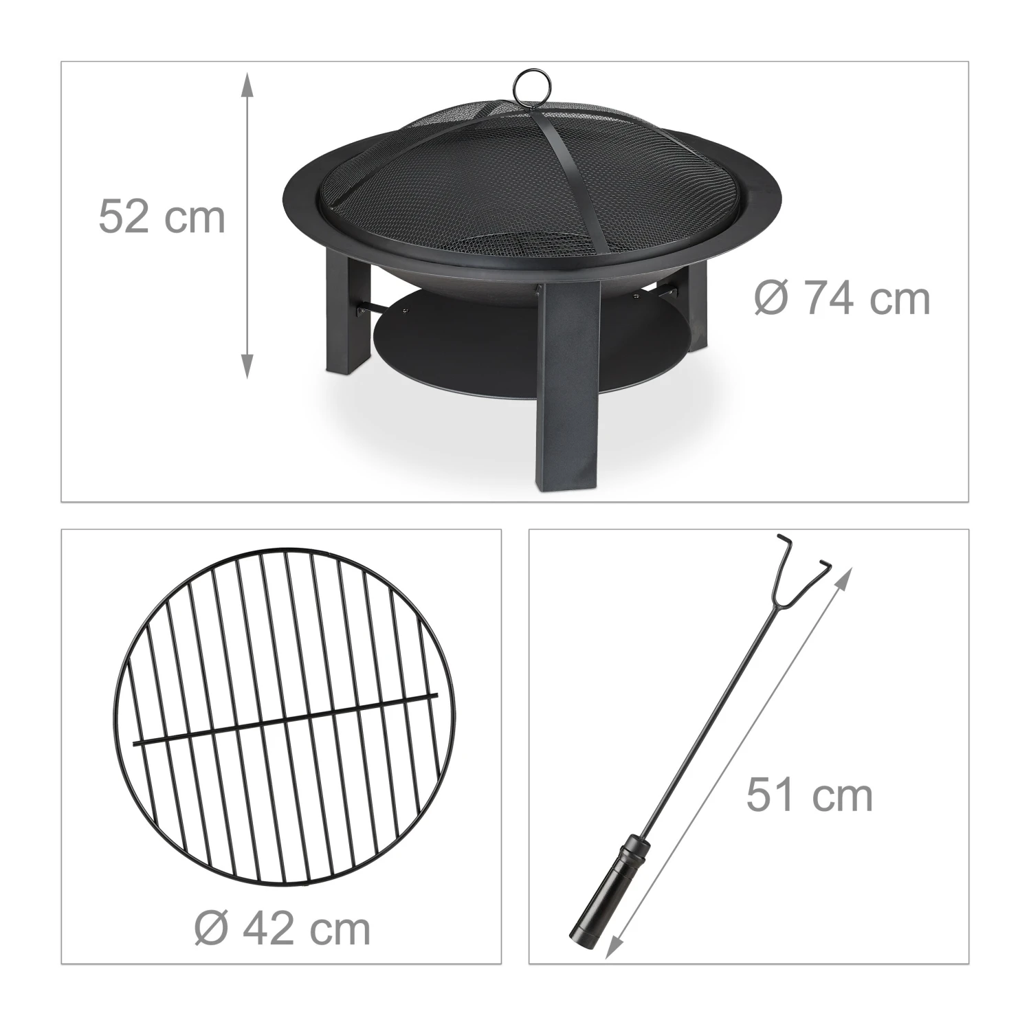Ein Lagerfeuer im Garten, Marshmallows und Stockbrot rösten und das Knistern der Flammen genießen – mit dieser Feuerschale holen Sie sich den Traum vom eigenen Lagerfeuer nach Hause. Die XXL Feuerstelle eignet sich für die Terrasse und den Garten. Die hohen Füße schützen Ihren Rasen vor allzu großer Hitze. Der Funkenschutz schränkt die Höhe der Flammen und den Funkenflug ein und schützt so die Umgebung. Für ein loderndes Feuer sind Schürhaken und ein Feuerrost für Luftzirkulation mit dabei.