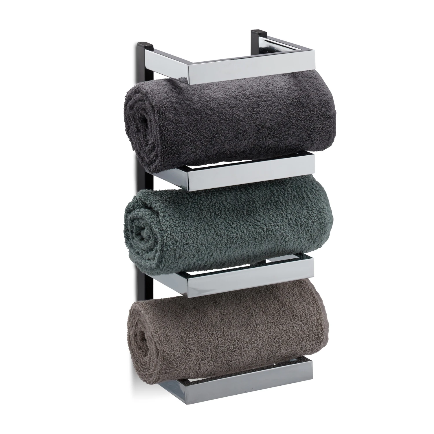 Handtücher sind nicht nur praktisch, sondern können auch selbst Teil eines ansprechenden Wohnambientes sein. Ein Blick auf das Handtuchregal macht deutlich, wie das gemeint ist. Die hängende Handtuchablage bietet Platz für mehrere zusammengerollte Badetücher, die durch das moderne und zugleich schlichte Design bestens zur Geltung kommen. Ob im Bad oder im Gäste-WC, in der Küche oder im Hotel: Dank des Handtuchhalters hängen Handtücher überall griffbereit. Die für die Wandmontage erforderlichen Dübel und Schrauben sind bereits in der Lieferung enthalten.