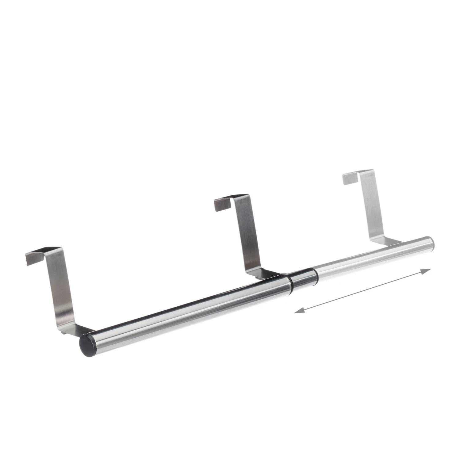 Die ausziehbare Handtuchstange hat einige Vorteile, die sie zu einem sehr nützlichem Begleiter im Haushalt machen. Um sie anzubringen, kommen Sie ganz ohne Bohren aus: Der Handtuchhalter wird mithilfe der beiden Haken einfach an eine maximal 2,5 cm dicke Tür gehängt. Dadurch sind Hand- oder Geschirrtücher immer genau dort griffbereit, wo Sie sie gerade benötigen. Die optimale Breite der Stange können Sie zwischen 25 und 40 cm variabel festlegen. Der zusammengeschobene Türhandtuchhalter lässt sich überall platzsparend verstauen – praktisch!