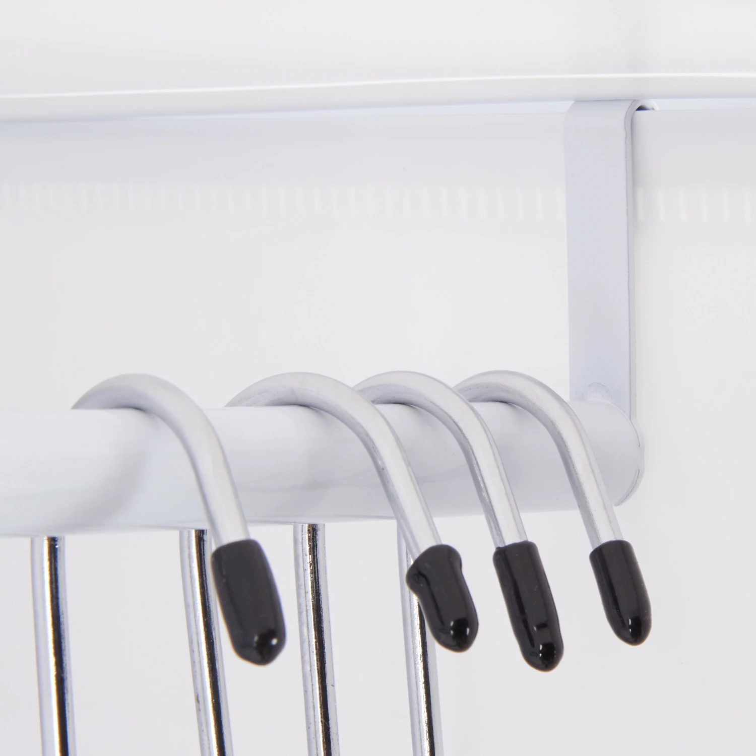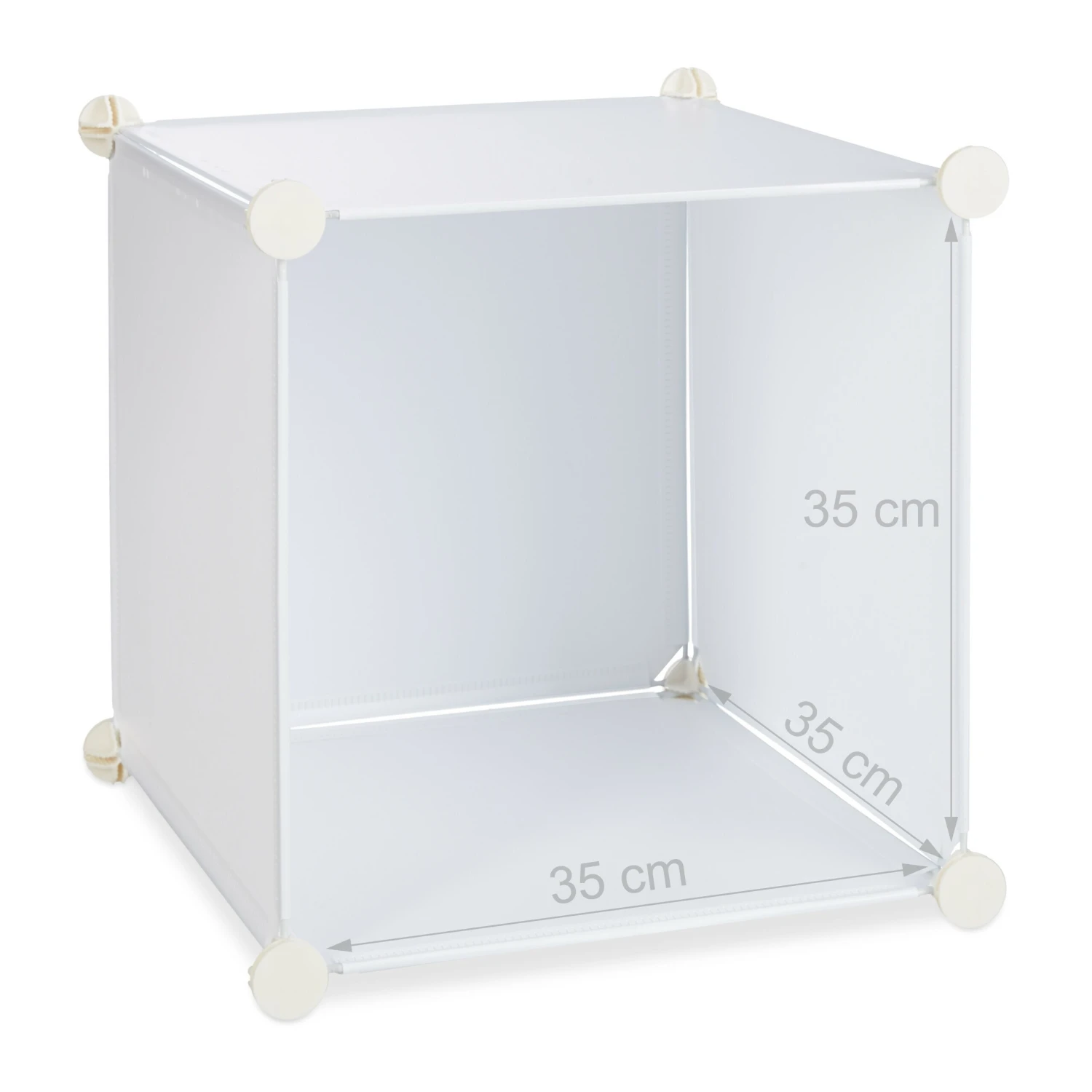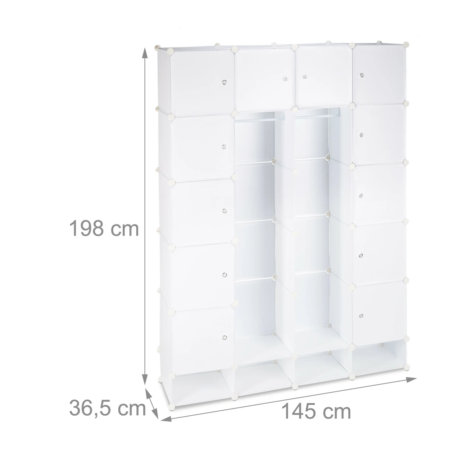 Mit dem cleveren Stecksystem kreieren Sie einen Kleiderschrank nach Ihren Vorstellungen. Die einzelnen Elemente aus robustem Kunststoff bilden mit der Hilfe von Verbindungsstücken bis zu 18 Fächer für Ihre Hosen, Shirts, Pullover und Schuhe. Die mitgelieferten Kleiderstangen ermöglichen es Ihnen, Blusen, Hemden und Jacken aufzuhängen. Nutzen Sie den Steckschrank auch für das Büro, für das Wohnzimmer als Raumteiler oder im Flur. Die großen, quadratischen Fächer bieten jede Menge Stauraum für Kleidung, Bücher und diverse Haushaltswaren.
