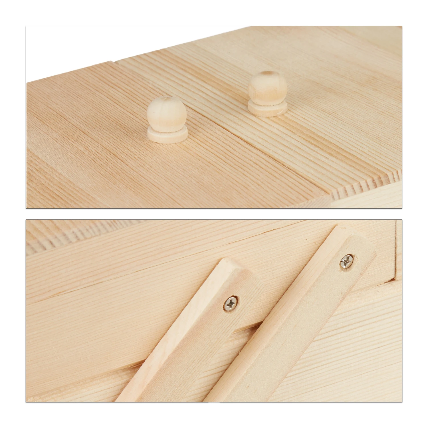 In dem Nähkästchen aus Holz bewahren Sie Ihr Nähzeug immer griffbereit und übersichtlich geordnet auf. 5 verschieden große Fächer bieten Platz für Nadeln, Spulen, Garne, Knöpfe, Maßbänder und weiteres Nähzubehör. Dank der Deckel ist es jederzeit vor Staub und Schmutz geschützt. Auch für andere Handarbeitsutensilien, Schmuck, Stifte, Radiergummis und vieles mehr bietet die Holzschatulle Platz. Der Nähkasten wird seitlich ausgeklappt, sodass Sie auf eine Fächer zugleich zugreifen können – praktisch!