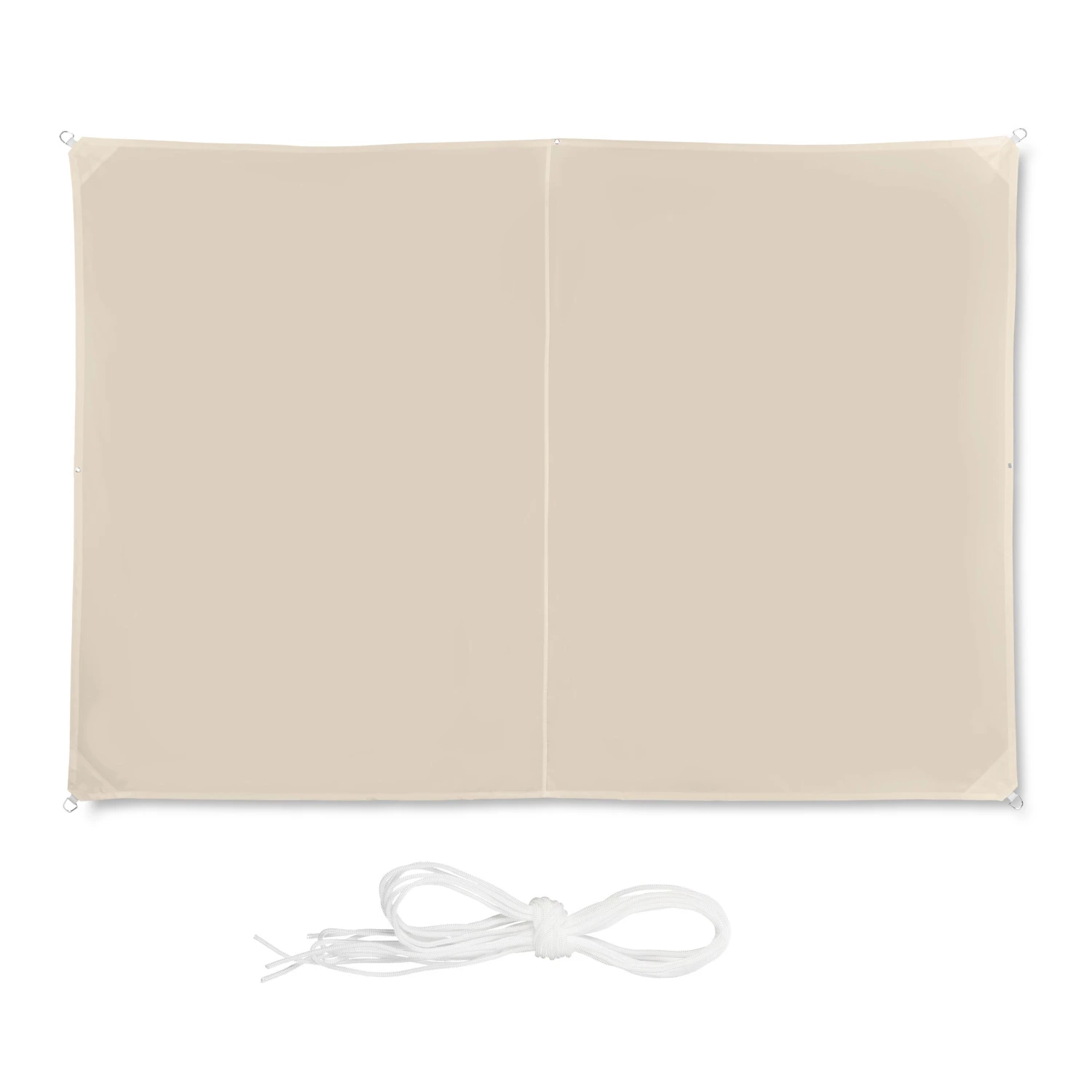 Es kann immer nicht schnell genug wieder Sommer werden. Wenn die ersten Sonnenstrahlen da sind, möchte man diese auch auskosten. Aber direkte Sonneneinstrahlung auf Dauer birgt die Gefahr eines Sonnenstichs. Das beige Sonnensegel in rechteckiger Form spendet nicht nur großzügig Schatten, es bietet gleichzeitig auch einen wirksamen UV-Schutz. Schützen Sie sich, Ihre Kinder und frei laufende Vierbeiner vor gesundheitsschädlicher Sonneneinstrahlung und genießen Sie den Sommer in vollen Zügen. Nutzen Sie das Sonnendach über der Terrasse, auf dem Balkon, am Sandkasten oder Pool bzw. beim Camping. Der Schattenspender wird mit Spannseilen befestigt, die durch Haken und Ösen am Sonnentuch gezogen werden.