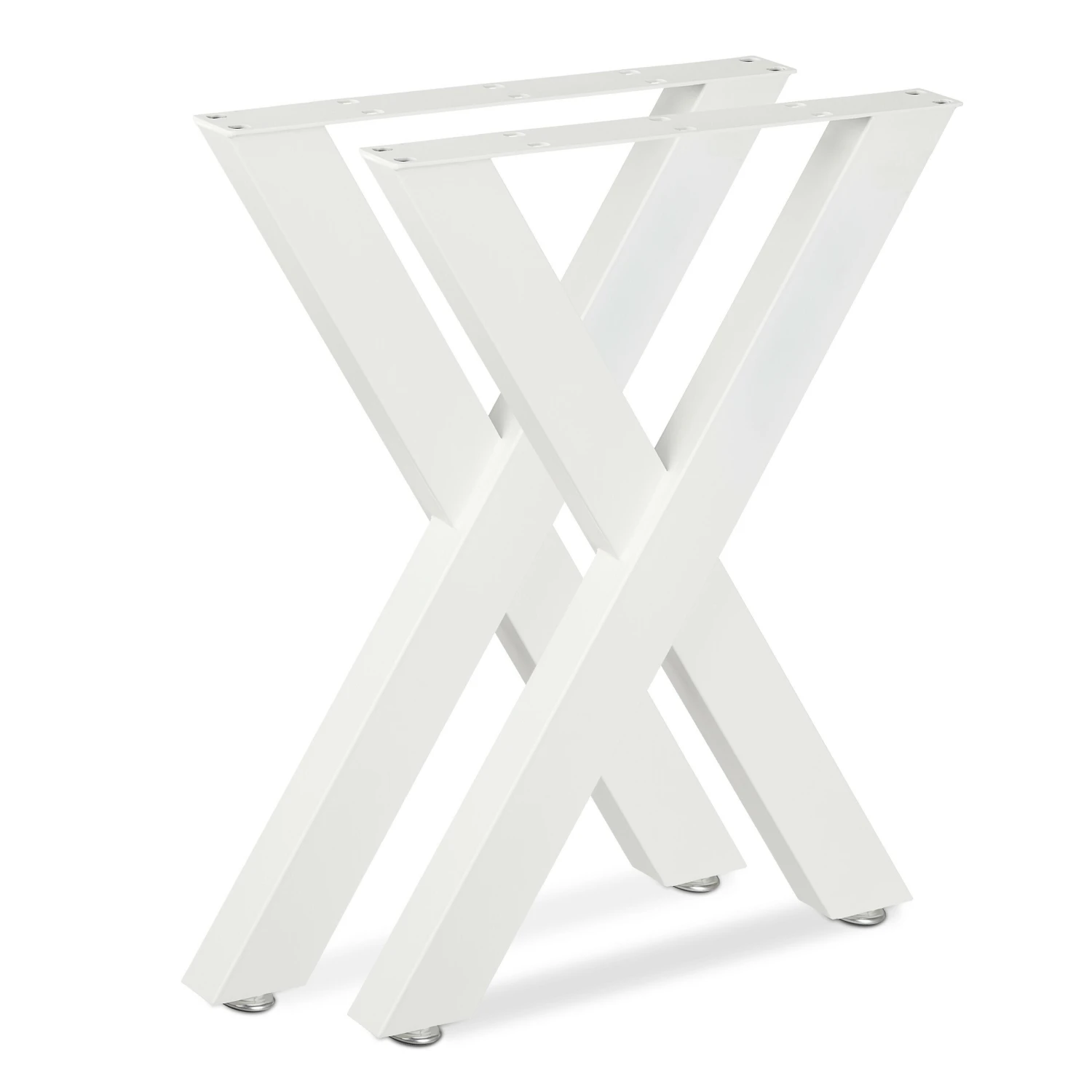 Starten Sie Ihr eigenes DIY Projekt mit diesem Tischgestell Paar im modernen Design. Die 2 Tischbeine sind ideal für alle, die gern selbst handwerklich tätig werden und Schwung in Ihre Einrichtung bringen wollen. Befestigen Sie die 2 Metallbeine mit dem beiliegenden Montagematerial an einer Tischplatte Ihrer Wahl und lassen Sie somit Ihren eigenen Esstisch, Wohnzimmertisch sowie Schreib- oder Beistelltisch entstehen. Die angesagte X-Form der Tischkufen sorgt dabei für einen aufregenden Look.