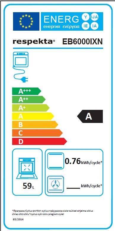 - Energieeffizienzklasse: A (auf einer Skala von A+++ (niedriger Verbrauch) bis D (hoher Verbrauch)).