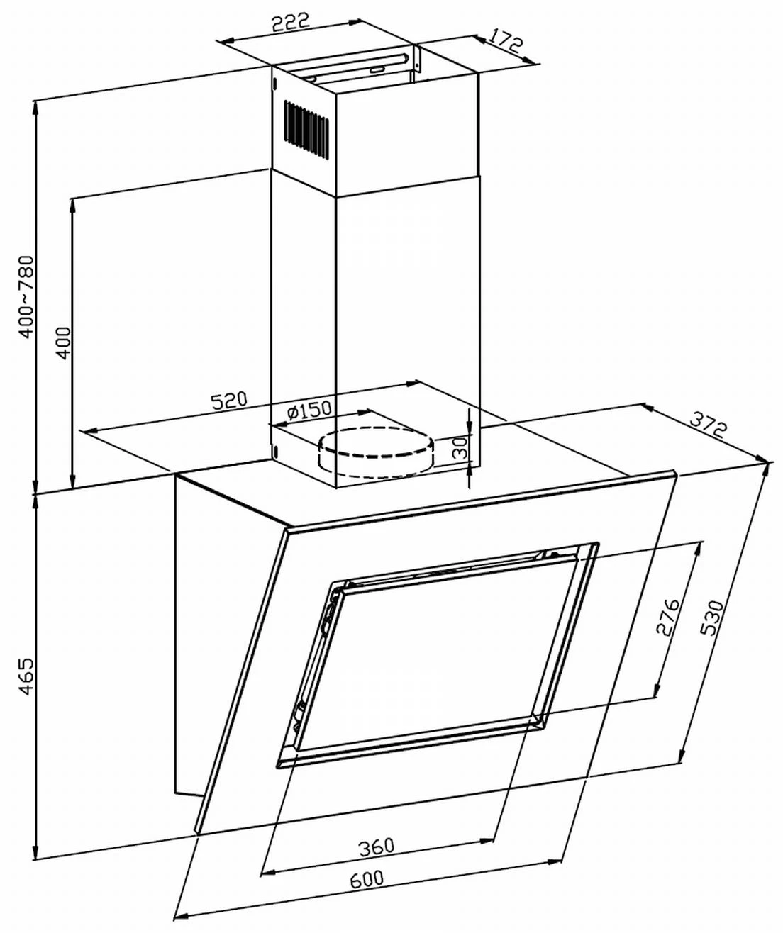 - Gerätemaße in cm (H x B x T) / Gewicht: 86,5-124,5 x 60 x 37,2 / 11,6 kg