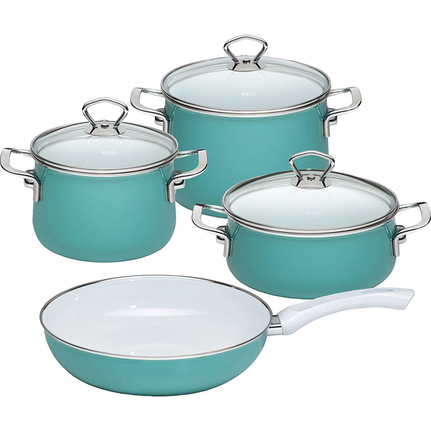 - Lieferumfang: Set bestehend aus: Email Pfanne 28 cm, Fleischtopf mit Glasdeckel 16 cm 2L, 20 cm 4L, Kasserolle mit Glasdeckel 20 cm 2L