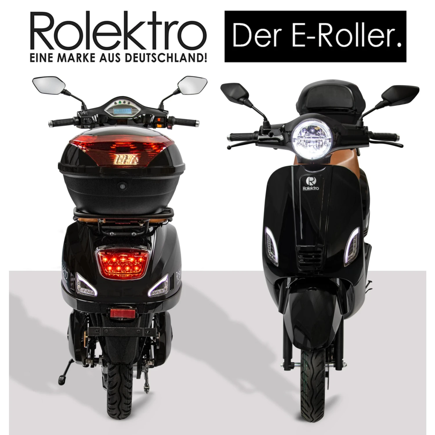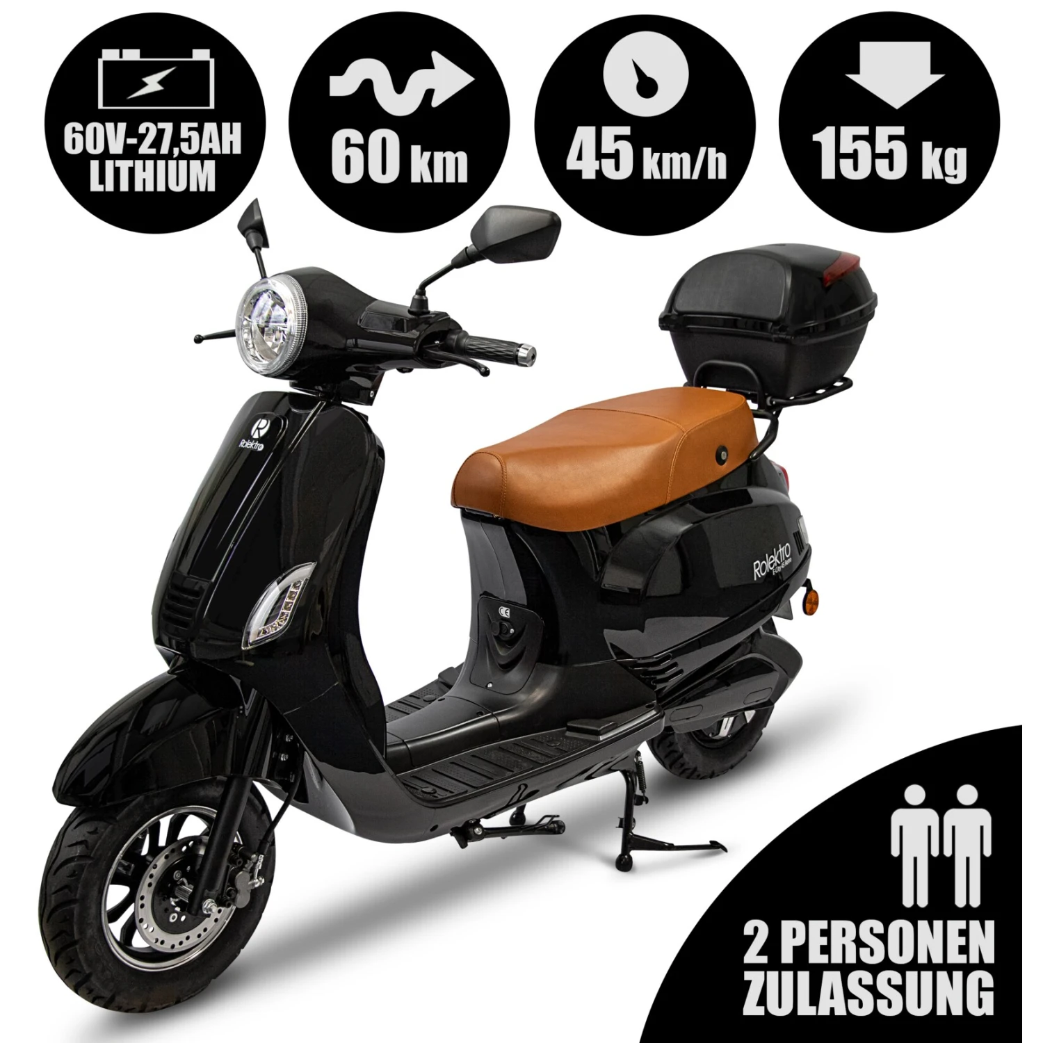 Der Rolektro Retro 45 Lithium, V.2021 ist ein hochwertig verarbeiteter Elektroroller, der maximalen Fahrspaß für 2 Personen bietet.