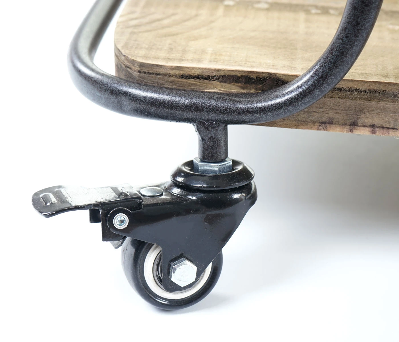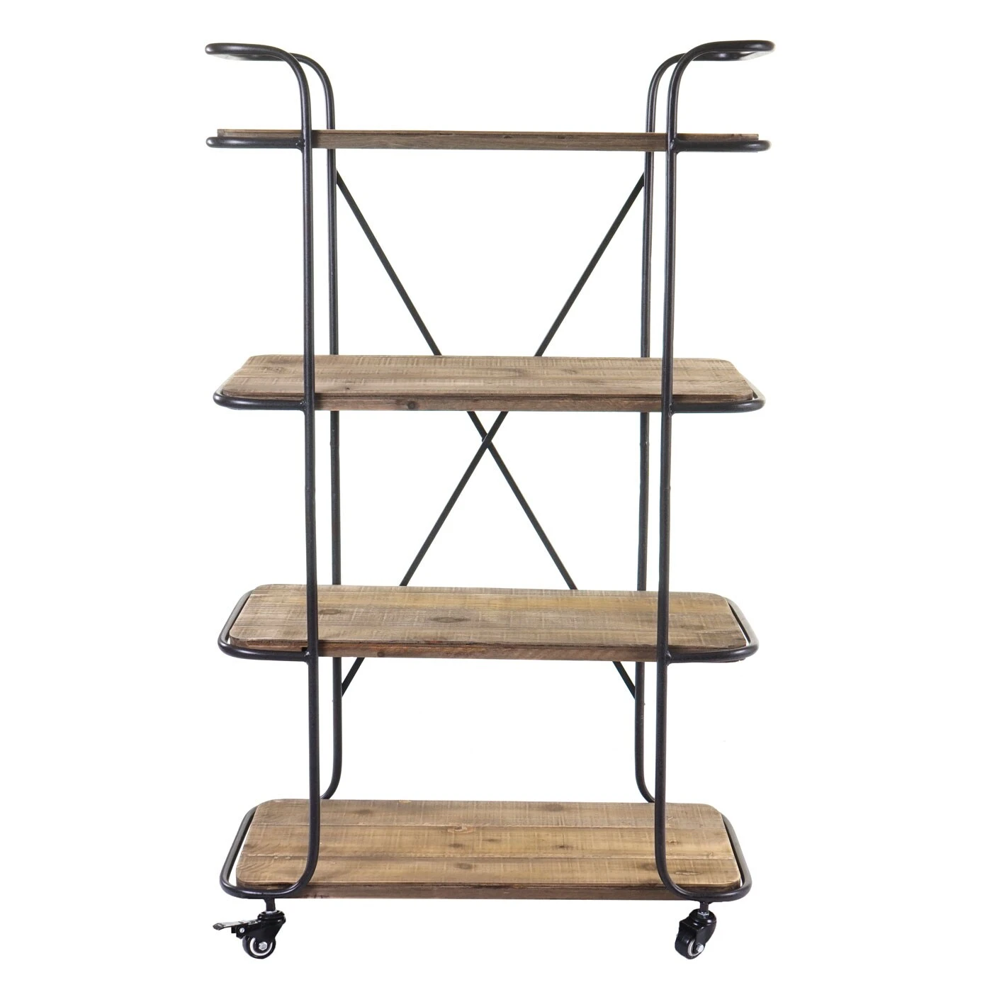 Dieses praktische, rollbare Regal überzeugt durch seine vielseitigen Einsatzmöglichkeiten. Egal, ob klassische Nutzung als Bücherregal, als Ablagefläche für Wohnaccessoires und Pflanzen, Vorratsregal in der Küche oder auch als Servierwagen. Die vier Ablageböden bieten genügend Platz und die Rollen gewährleisten ein bequemes Verschieben. Zwei der vier Rollen lassen sich fixieren und verhindern unerwünschtes Wegrollen. Die Kombination aus dem schlichten Metallgestell und einfachen Naturholzböden wirkt modern, aber nicht kühl – ein passender Kontrast zu klassischen Möbeln oder als Ergänzung einer Einrichtung im Industriedesign.