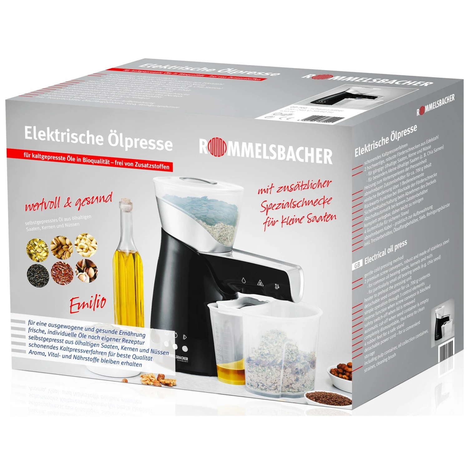 Die elektrische Ölpresse OP 700 von Rommelsbacher ist ideal, um sich jederzeit mit selbstgemachten, individuellen Ölen in Bioqualität zu versorgen. Gesunde Öle, selbst hergestellt aus Saaten, Kernen, Nüssen, sind wichtig für eine ausgewogene Ernährung, die auf künstliche Zusatzstoffe verzichtet. Auch für Naturkosmetik sind frische, selbstgepresste Öle eine hochwertige Basis. Dieses außergewöhnliche Gerät verfügt über zwei unterschiedliche Pressschnecken. Dadurch können zusätzlich zu allen gängigen Saaten und Kernen (wie z. B. Kürbiskerne, Erdnüsse, Pistazien) selbst kleinkörnige Sämereien wie beispielsweise Chia Samen optimal zu hochwertigen Ölen verarbeitet werden. Die Presse arbeitet im schonenden Kaltpressverfahren, was sicherstellt, dass alle Aromen, Vitamine und Nährstoffe im Öl erhalten bleiben. Wer Wert legt auf den unverfälschten Genuss hochwertiger, individueller Öle, der hat mit dieser elektrischen Presse den perfekten Experten gefunden.