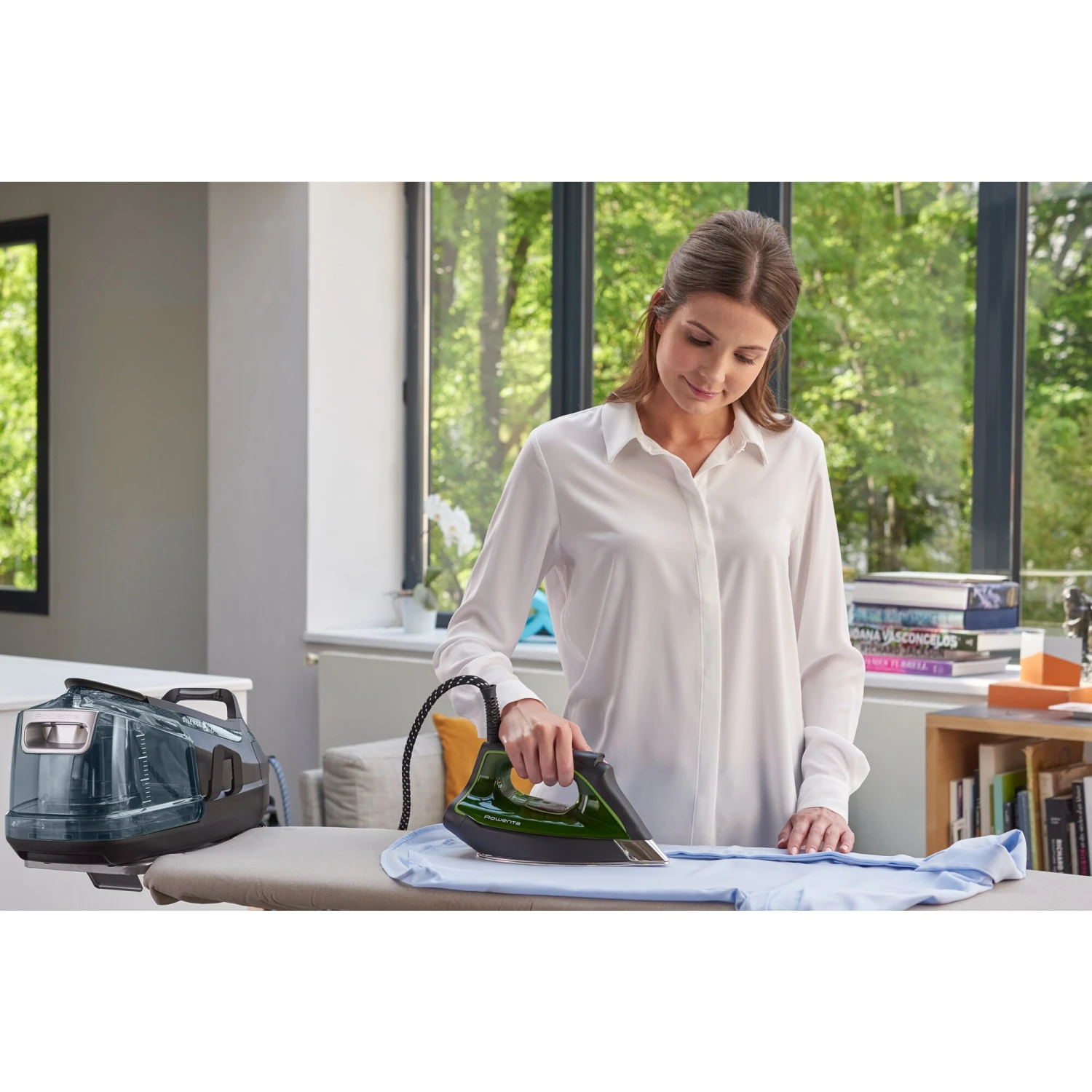 Die Silence Steam Pro DG 9248 von Rowenta ist eine leistungsstarke Dampfbügelstation und entfernt die hartnäckigsten Falten im Handumdrehen. Die Silence Steam Pro sorgt für herausragende Ergebnisse selbst für die anspruchsvollsten Gewebe. Die 8-bar-Hochdruck-Dampfbügelstation bietet einen auf die Präzisionsspitze konzentrierten extra Dampfstoß von 600 g/Min. und meistert so selbst die hartnäckigsten Falten. 5 elektronische Voreinstellungen sorgen für eine perfekte Kombination von Dampf und Temperatur für jedes Gewebe. Der Kalk-Kollektor sorgt für Langlebigkeit.