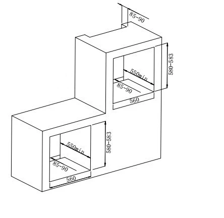 - Einbaumaße Backofen (H x B x T) 58 x 56 x 55 cm