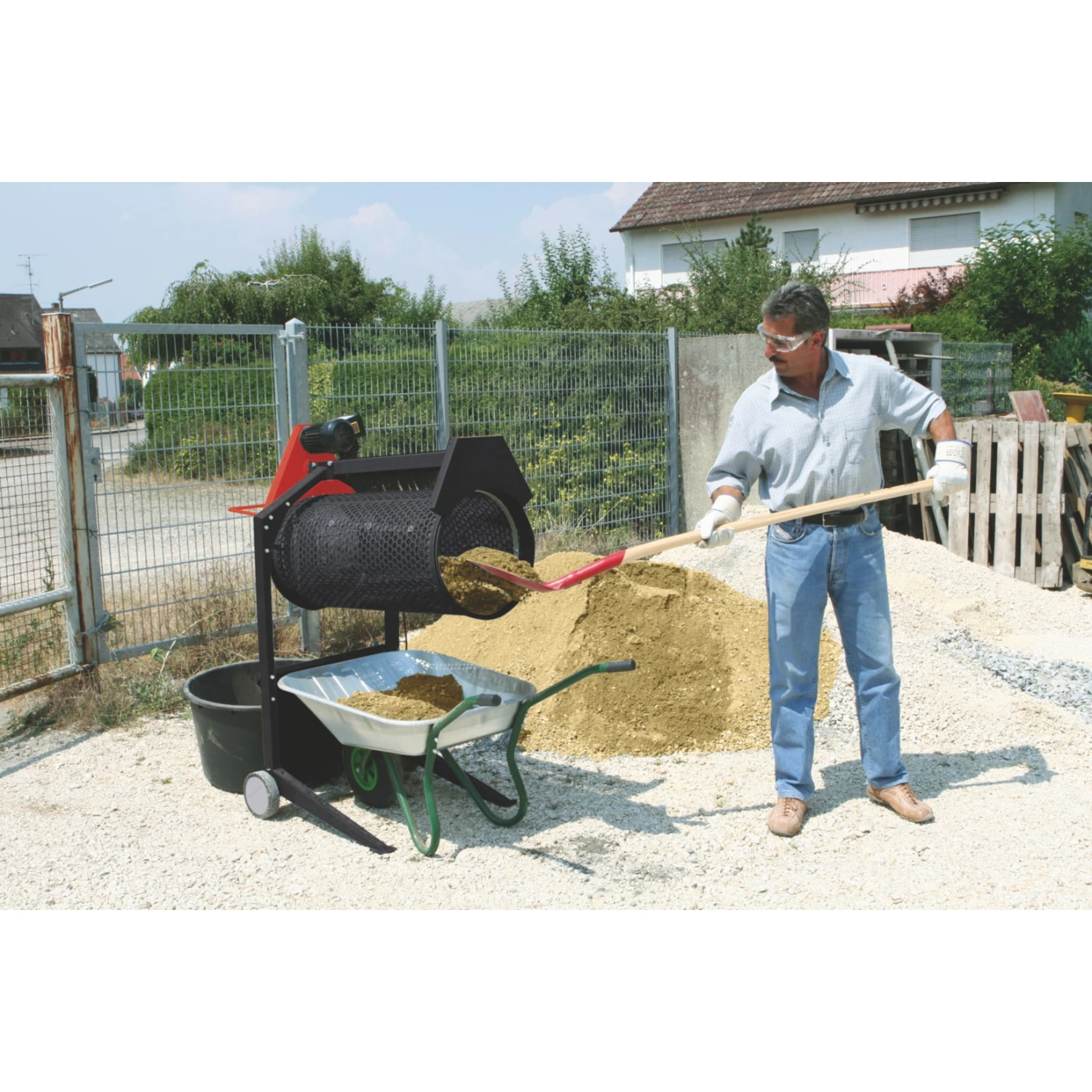Der einstellbare Neigungswinkel der Siebtrommel, sowie die 10 mm Maschenweite im Siebeinsatz erleichtern das Sieben.