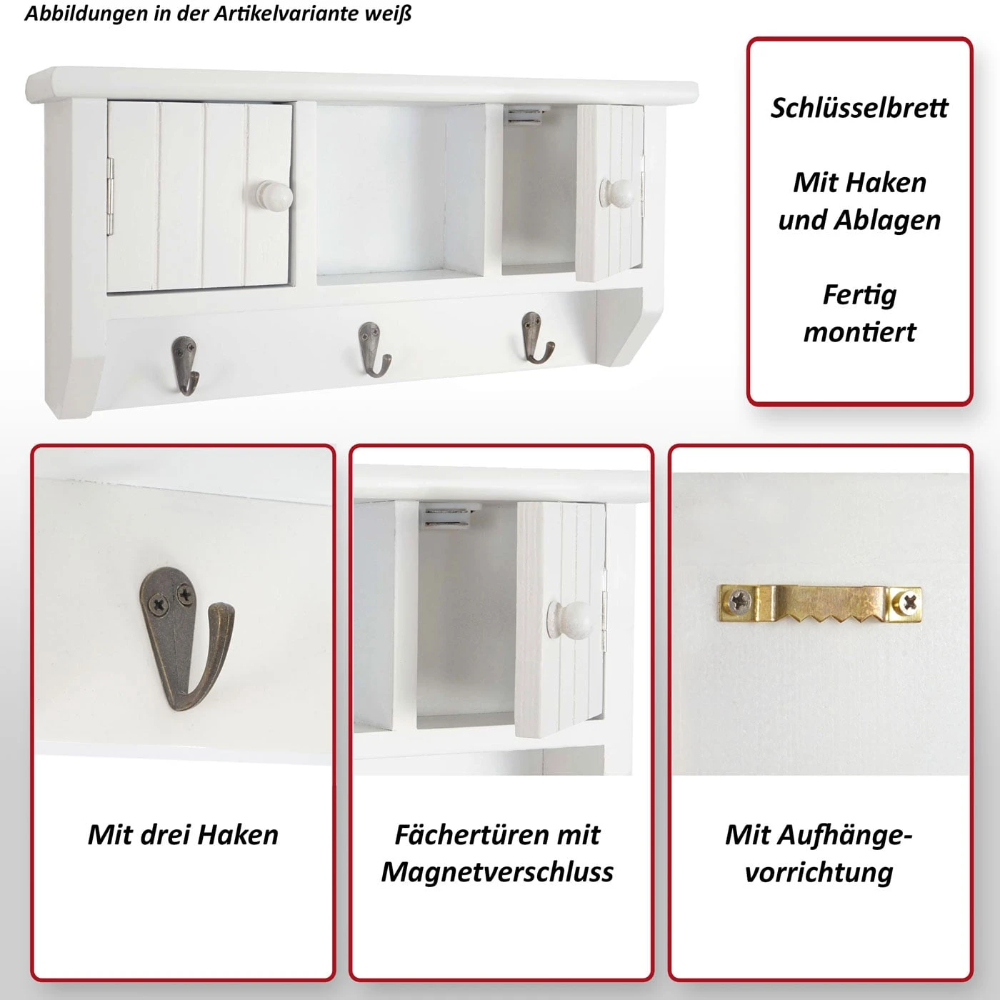 – Dieses praktische Schlüsselboard aus Holz darf in Ihrer Garderobe nicht fehlen. Durch das Ablagebrett und die drei Ablagefächer bietet dieses Schlüsselbrett ausreichend Platz für Alltagsgegenstände.