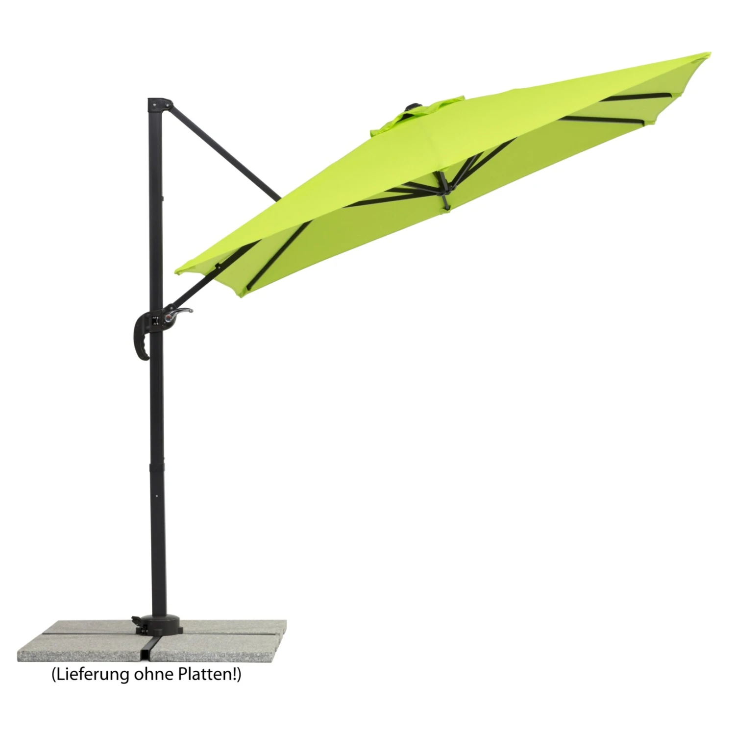 Dieser Sonnenschirm ist ein quadratischer Ampelschirm in der Größe 230 x 230 cm.