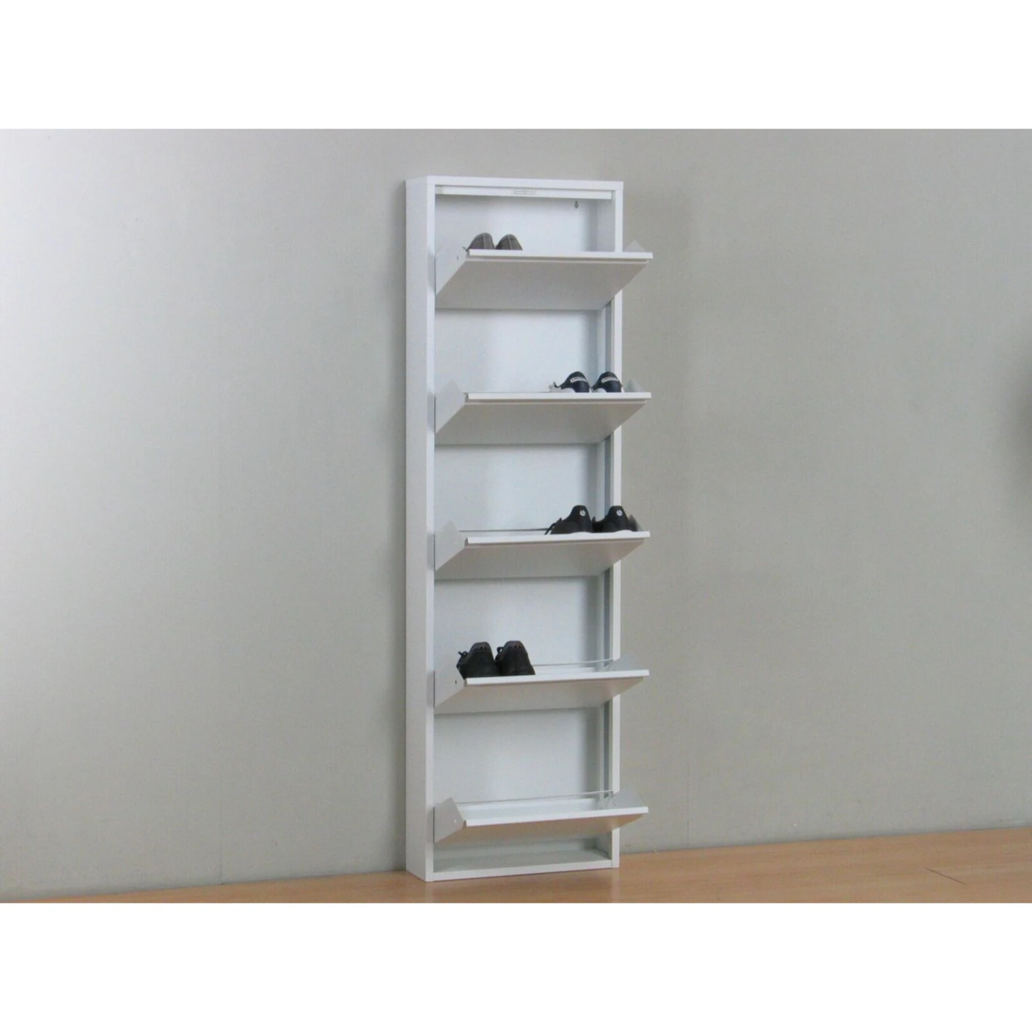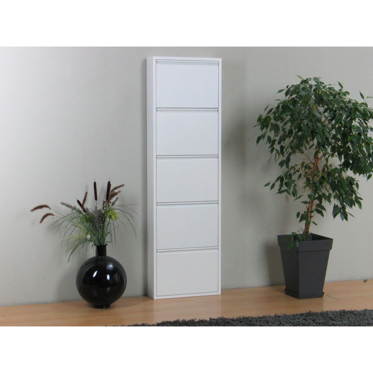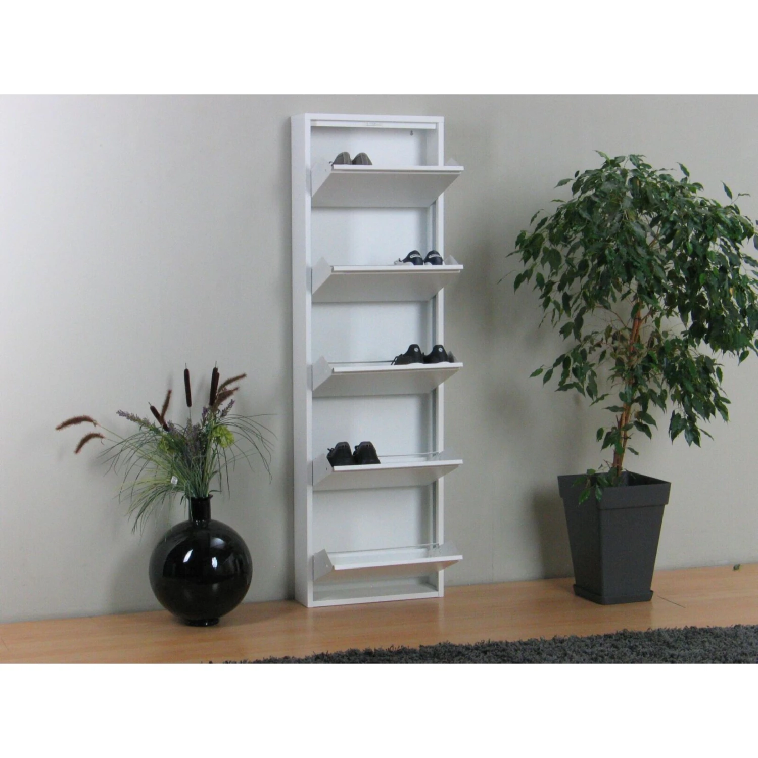 - 1x Schuhschrank Pisa mit 5 Klappen, weiß (ohne Dekoration)