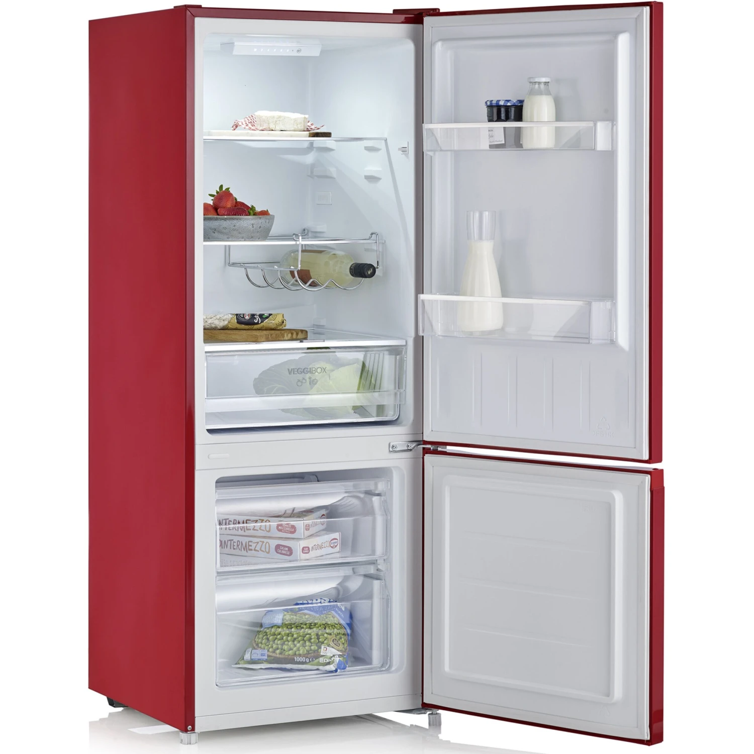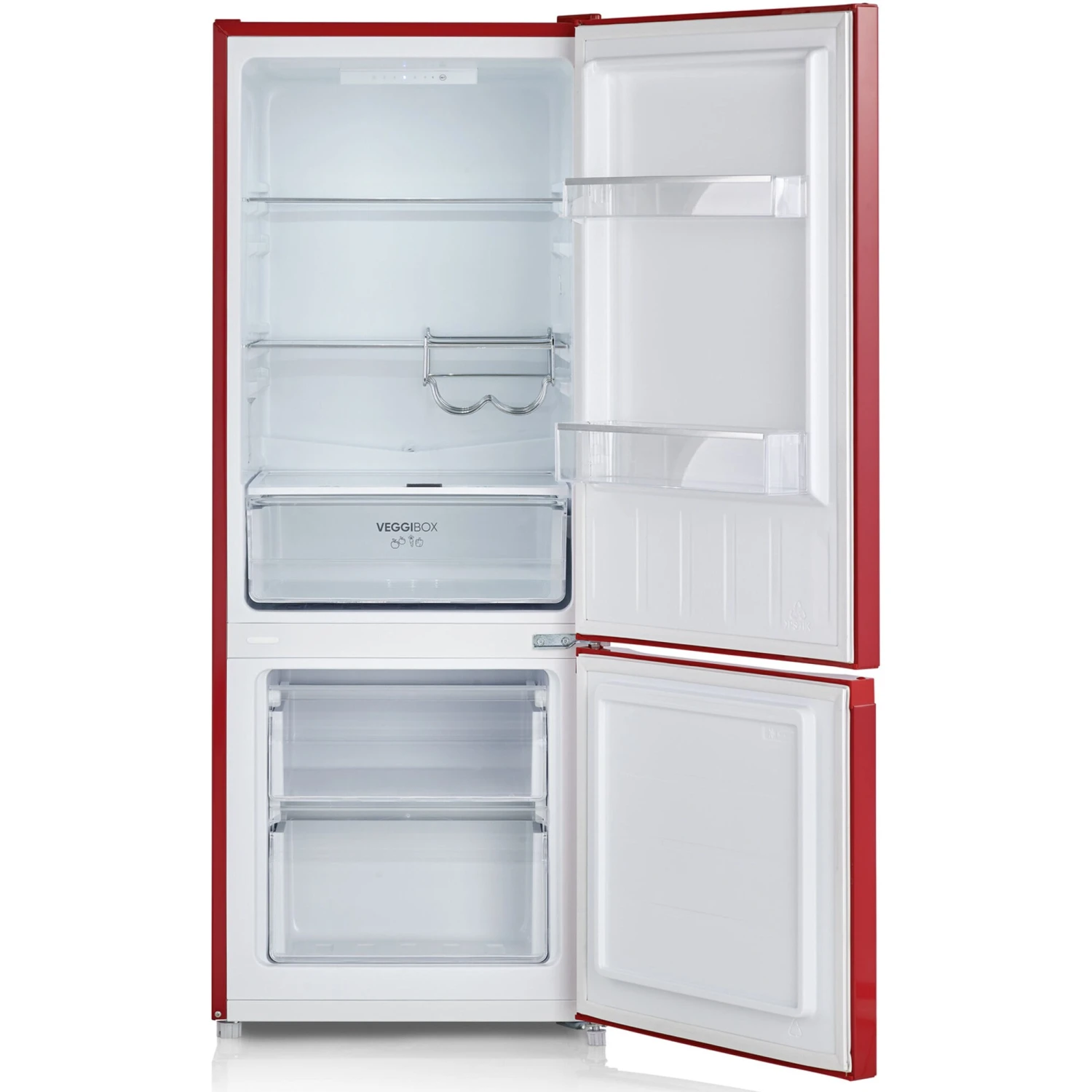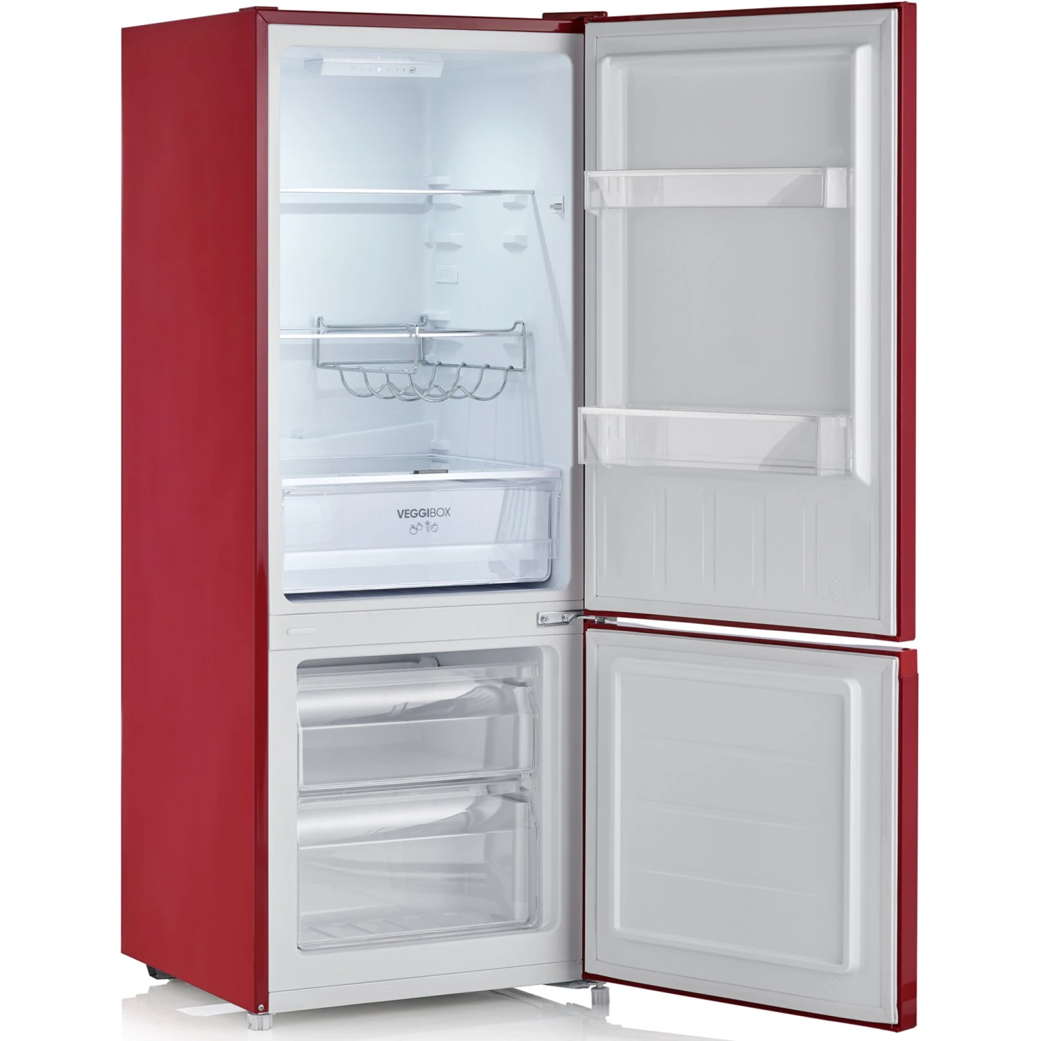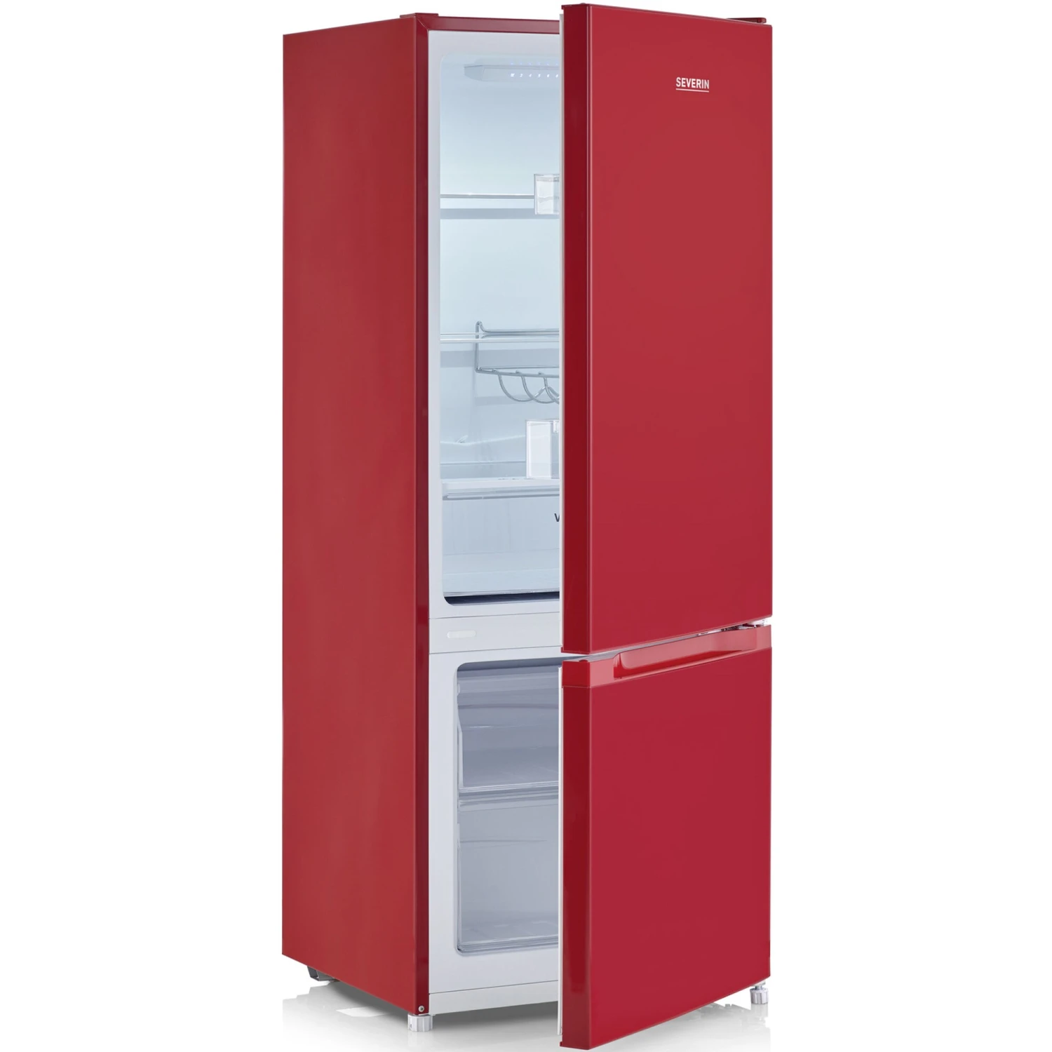 Die Kühl-/Gefrierkombination Severin KGK 8972 ist mit einen Gesamtnutzinhalt von 205 Litern ideal für den kleineren bis mittelgroßen Haushalt geeignet. Der 153 Liter umfassende Kühlraum stellt drei Glasabstellflächen, davon zwei höhenverstellbar, eine große Obst-/Gemüseschublade mit Feuchtigkeitsregulierung sowie zwei Türfächer für die übersichtliche Lagerung frischer Lebensmittel zur Verfügung. Das LED-Licht sorgt dabei für eine effiziente Ausleuchtung des Innenraums für eine gute Sicht auf die Speisen und die Superkühlen-Funktion sorgt für ein schnelles Abkühlen nach dem Einkauf. Der 52 Liter große Gefrierraum ist mit zwei Gefrierschubladen für Tiefkühlkost ausgestattet und muss dank LowFrost-Technologie für eine reduzierte Eisbildung seltener abgetaut werden. Die Temperaturregelung erfolgt elektronisch an der Kühlschrankdecke und der Türschlag ist wechselbar je nach optimaler Position. Mit einem Stromverbrauch von 191 kWh im Jahr ist die KGK 8972 in die Energieeffizienzklasse E eingestuft.