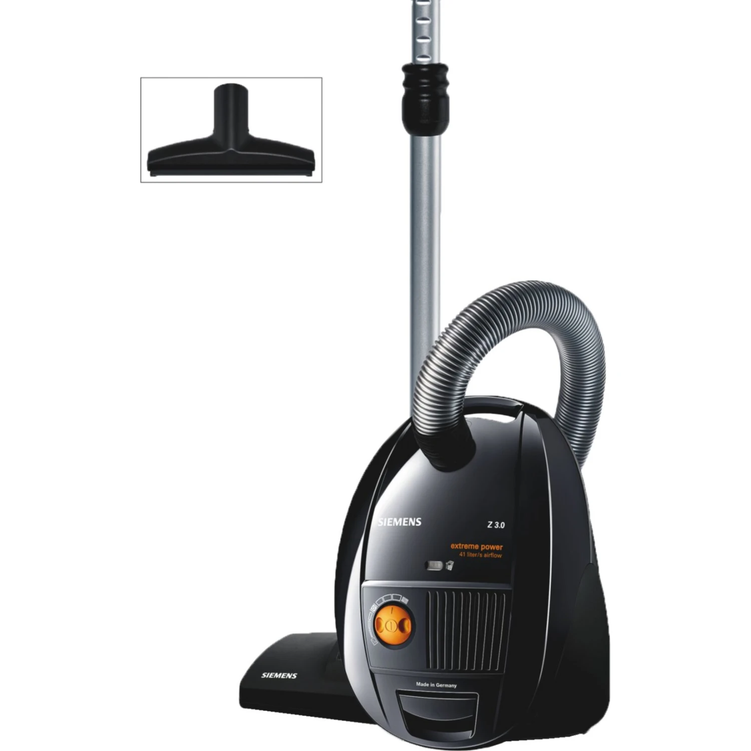 Der Bodenstaubsauger Siemens VSZ3XTRM11 hat einen PureAir Hygiene Filter, der für saubere Ausblasluft sorgt. Die Saugkraft wird elektronisch mit einem Drehregler reguliert. Drei Lenkrollen, ein Aktionsradius von zehn Metern und ein Ergo-Handgriff ermöglichen einfache und komfortable Handhabung.