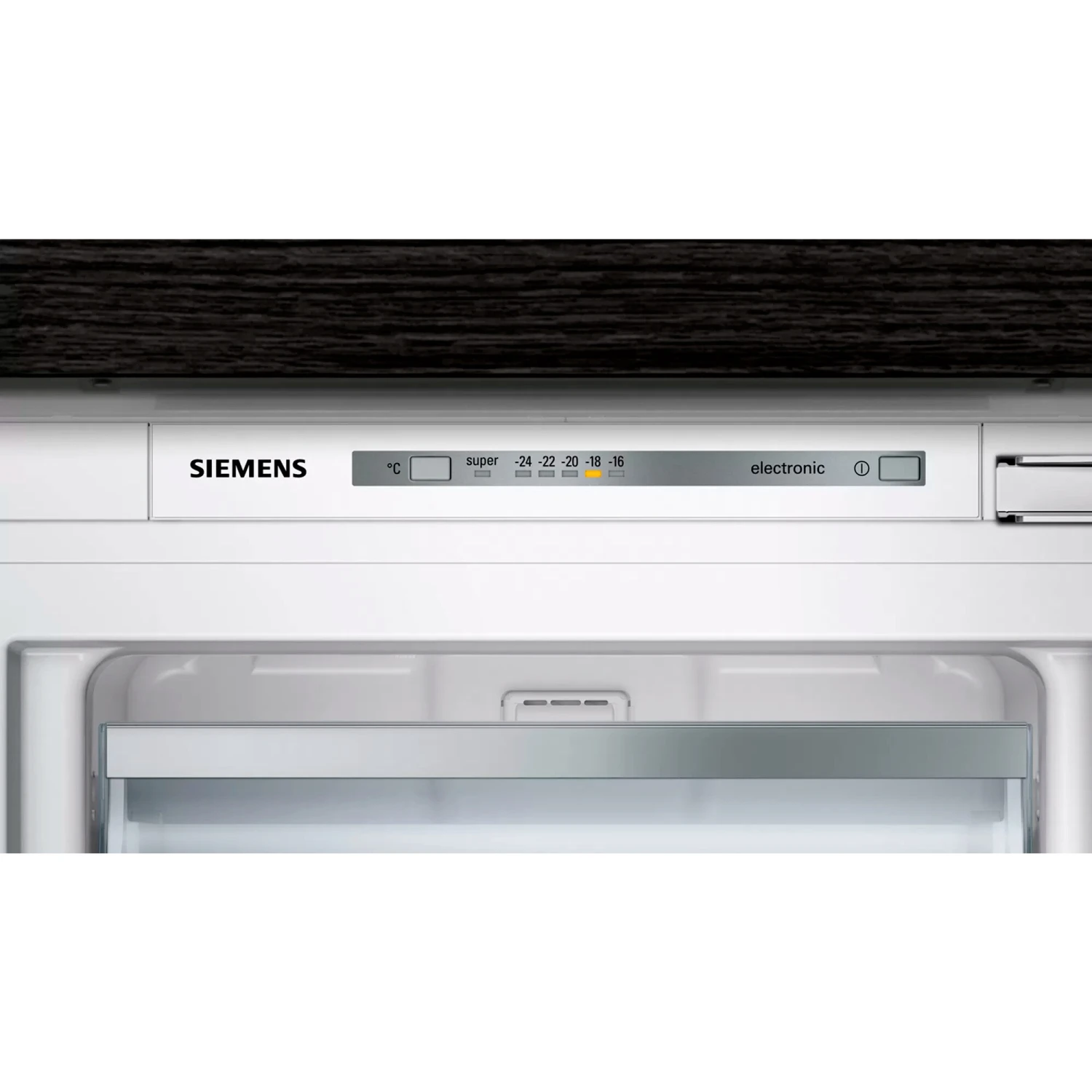 Der Einbau-Gefrierschrank GI21VADD0 stellt einen Gesamtnutzinhalt von 95 Litern zur Verfügung und lässt sich dank seiner kompakten Maße auch in kleine Küchen integrieren. Er ist mit drei transparenten Gefriergutschubladen ausgestattet, davon eine bigBox um großes Gefriergut optimal zu lagern und zu stapeln. Die lowFrost-Technologie mit ihrem Spezialverdampfer reduziert die Eisbildung auf ein Minimum, sodass Energie und Arbeit beim Abtauen gespart wird. Die SuperGefrieren-Funktion mit Eingefrierautomatik schützt bereits Gefrorenes beim Einlagern frischer, wärmerer Lebensmittel und freshSense sorgt im gesamten Innenraum für eine konstante Temperatur durch intelligente Sensortechnik. Die Tür des GI21VADD0 schließt dank softClosing automatisch und sanft, wenn der Öffnungswinkel maximal 20° beträgt. Mit einem Stromverbrauch von 140 kWh im Jahr ist der GI21VADD0 in die Energieeffizienzklasse D eingestuft.