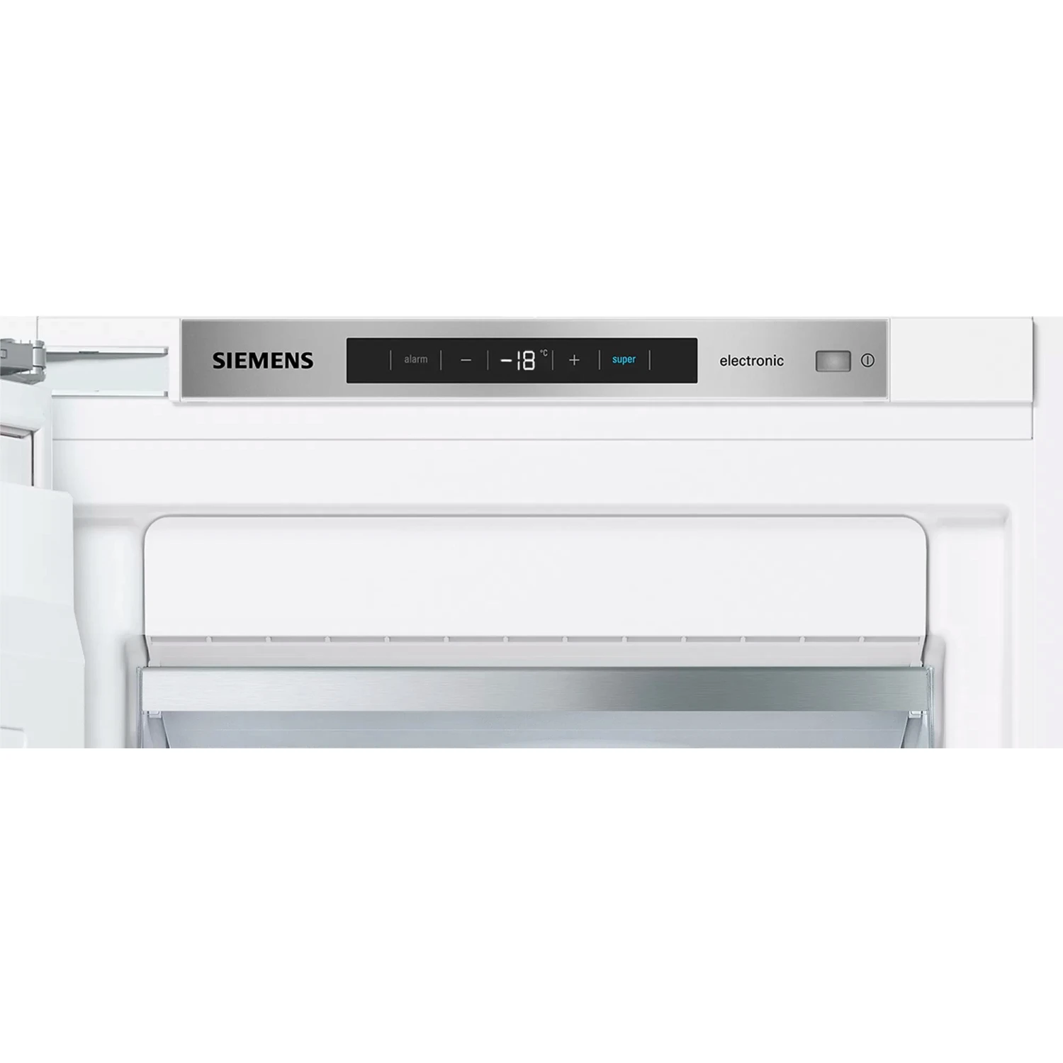 Der Einbau-Gefrierschrank GI81NACF0 bietet mit einem Gesamtnutzinhalt von 212 Litern viel Platz für Tiefkühlkost. Ausgestattet ist er mit zwei Gefrierfächern mit transparenter Klappe sowie fünf transparenten Gefriergutschubladen, davon zwei bigBoxen um großes Gefriergut optimal zu lagern und zu stapeln. Schubladen und Glasablagen lassen sich dank varioZone problemlos neu anordnen, um den Raum in Ihrem Kühlschrank flexibel zu gestalten. Die noFrost-Technologie verhindert zuverlässig die Bildung von Eis an den Geräteinnenseiten oder Reif auf den Lebensmitteln, sodass man nicht mehr mühsam abtauen muss. Die SuperGefrieren-Funktion mit Eingefrierautomatik schützt bereits Gefrorenes beim Einlagern frischer, wärmerer Lebensmittel und freshSense sorgt im gesamten Innenraum für eine konstante Temperatur durch intelligente Sensortechnik. Die Tür des GI81NACF0 schließt dank softClosing automatisch und sanft, wenn der Öffnungswinkel maximal 20° beträgt.