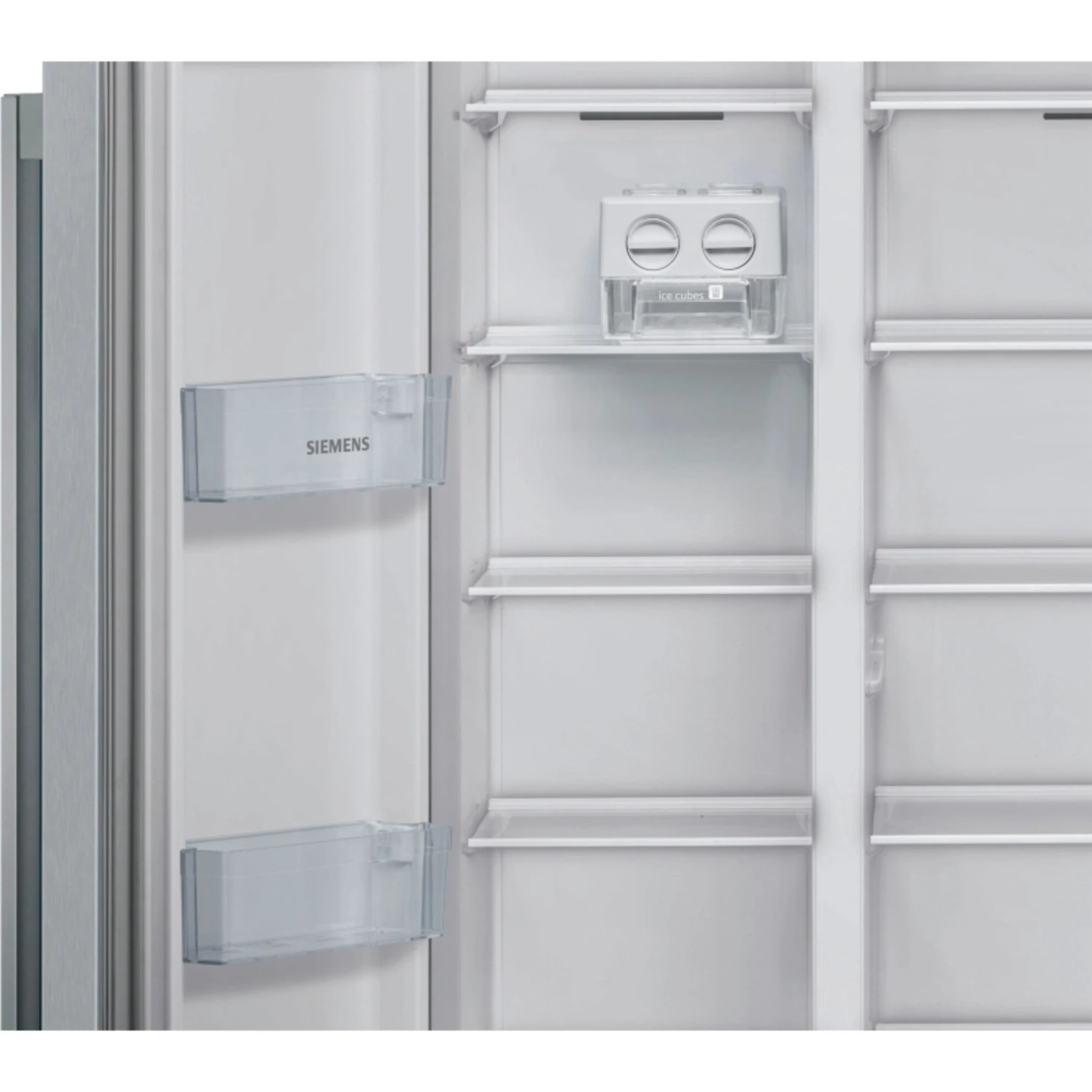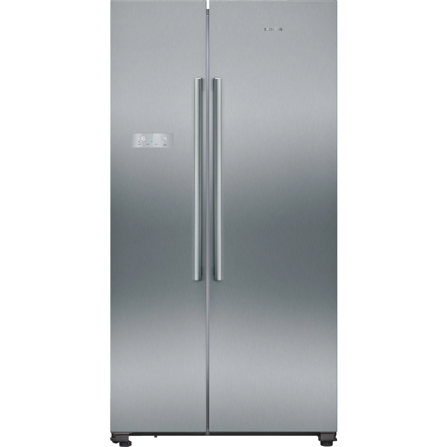 Der Siemens Side-by-Side KA93NVIFP iQ300 ist mit einem Gesamtnutzinhalt von 580 Litern ideal für den größeren Haushalt geeignet. Das 372 Liter umfassende Kühlteil mit MultiAirflow-System bietet auf fünf Abstellflächen aus Sicherheitsglas, in zwei FreshBoxen auf Rollen sowie in drei Türfächern viel Platz, um Lebensmittel übersichtlich zu lagern. Das Gefrierteil des KA93NVIFP umfasst 208 Liter und stellt fünf Glasabstellflächen, zwei transparente Gefrierschubladen sowie fünf Türfächer für Tiefkühlkost zur bereit. NoFrost verhindert zuverlässig die Bildung von Eis an den Geräteinnenseiten oder von Reif auf den Lebensmitteln. Mit dem IceTwister erhält man bis zu 20 Eiswürfel auf einmal und der Wassertank lässt sich zum sicheren Nachfüllen ganz einfach herausnehmen. Darüber hinaus überzeugt der KA93NVIFP mit den Funktionen SuperKühlen und SuperGefrieren sowie einer LED-Beleuchtung in Kühl- und Gefrierteil.