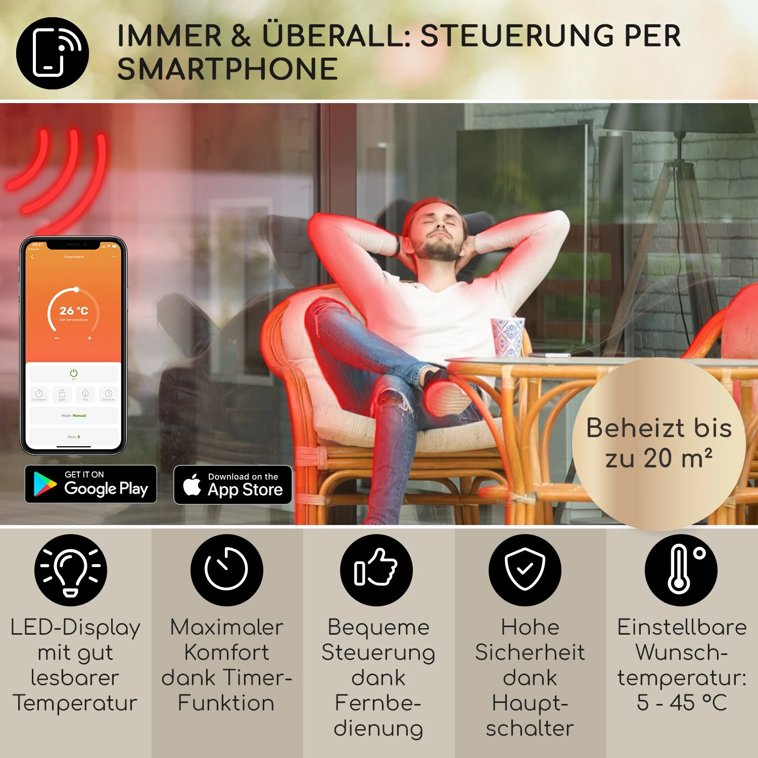 Smarte Wärme für Terrasse, Balkon oder Straßen-Cafés: Der Klarstein Smartwave Infrarot-Heizstrahler mit IR ComfortHeat-System bringt sanfte Infrarot-Wärme in kühle Tage und Nächte!