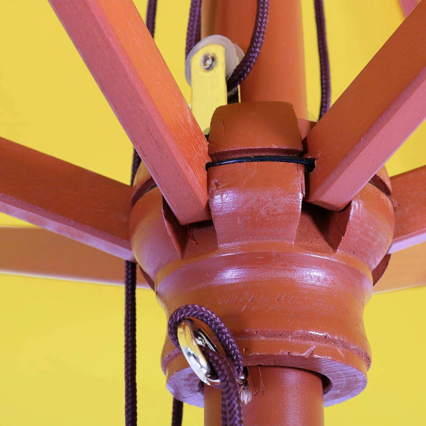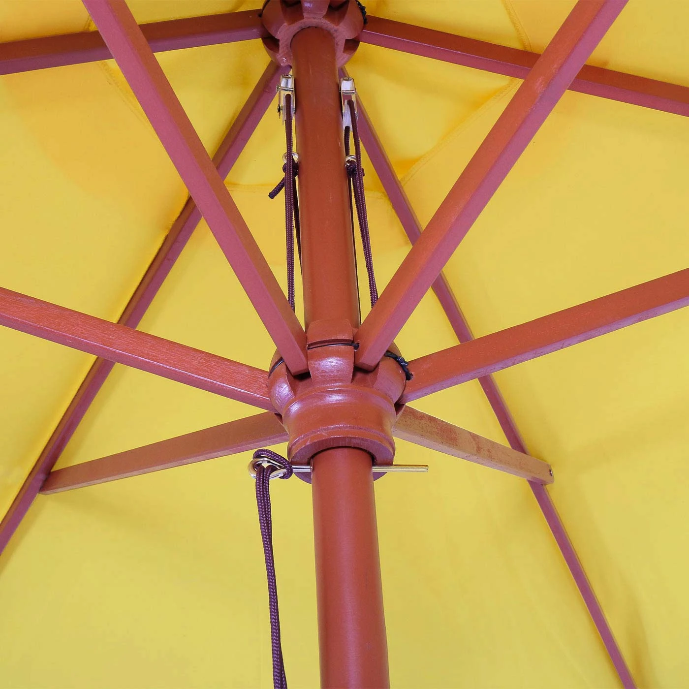 Es besteht – wie bei allen Schirmen – die Gefahr, dass die Holzstreben sich verkeilt haben. In diesem Fall bitte vor dem Öffnen unter den Schirm greifen und die Holzstreben wieder korrekt anordnen. Im Anschluss lässt sich der Schirm leicht entfalten.