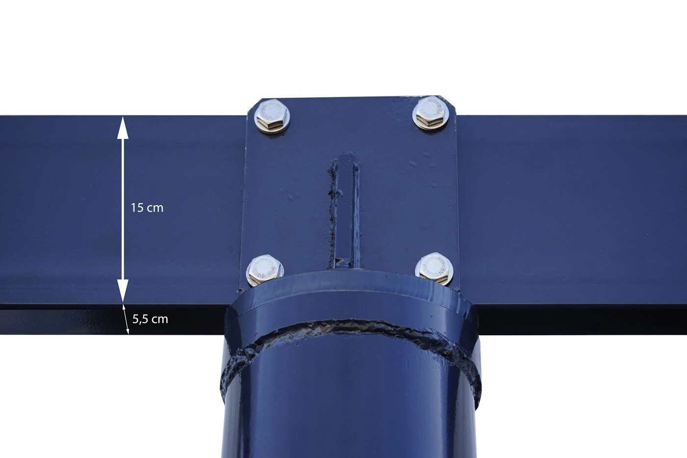 Der Vorteil dieses fest stehenden Standfußes ist, dass er zum Einbetonieren geeignet ist. Durch das Eigengewicht von 150 kg und die zusätzliche Betonierung erlangt die Konstruktion ihre Stabilität. Genauere Anweisungen zum Aufbau liegen selbstverständlich der Ware bei.