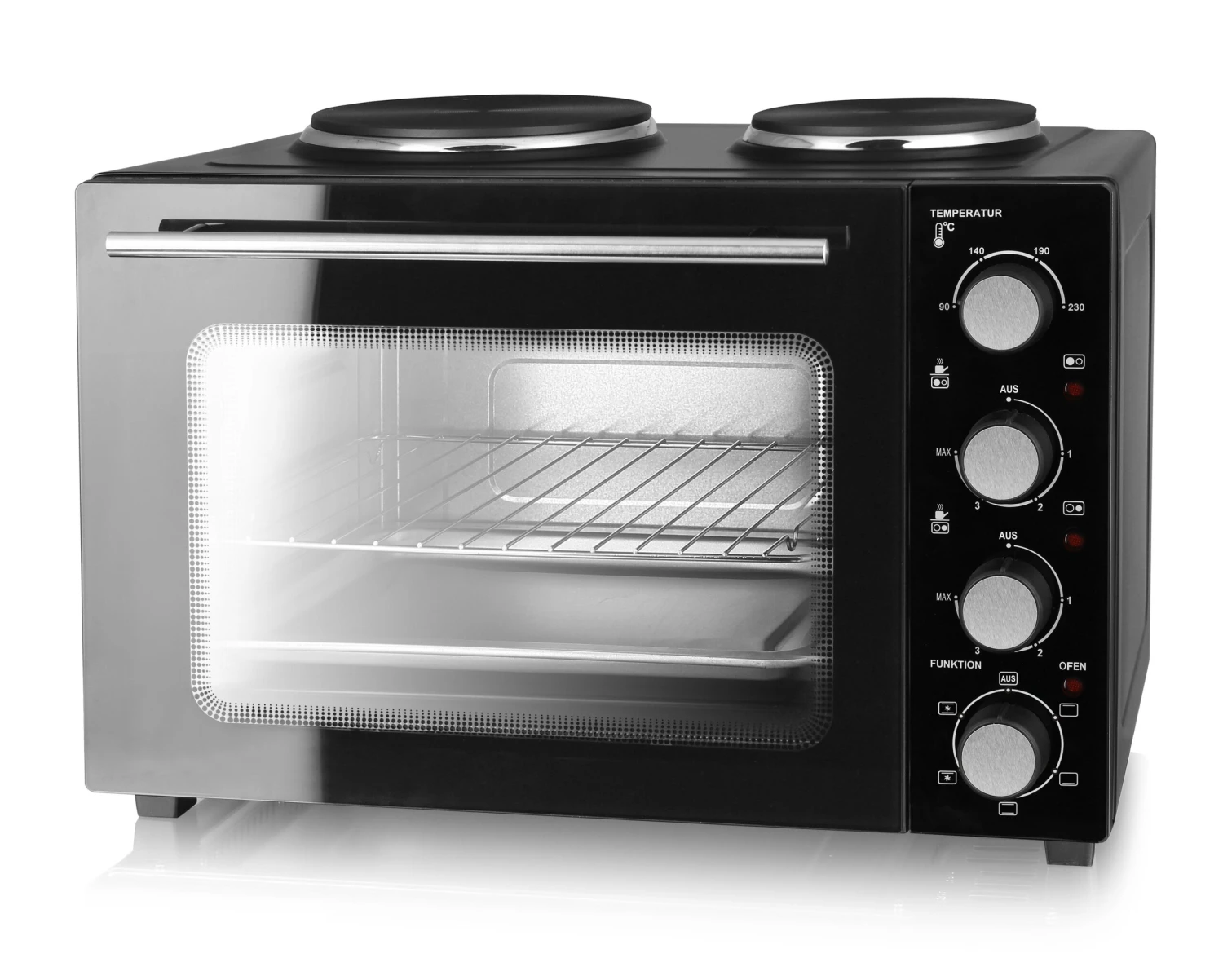 Der Miniküche ist durch seine kompakte Bauweise ideal für kleinere Küchen in kleinen Wohnungen, Studentenwohnungen, WGs oder Ferienappartments einsetzbar. Er kann auf der Arbeitsplatte platziert werden und bei Bedarf auch wieder im Schrank verstaut werden. Als Hobbykoch können Sie auch in einer kleinen Küchenumgebung Ihre Kochtalente entfalten. Die Miniküche kann mit den 2 Herdplatten zum Erwärmen von Speisen und Getränken benutzt werden. Der Backofen bietet alle Möglichkeiten wie Erhitzen, Grillen, Backen – also Zubereiten leckerer Speisen wie Braten aller Art, Pizza, Aufläufe, aber auch Mehlspeisen wie Kuchen, Muffins oder Brot.