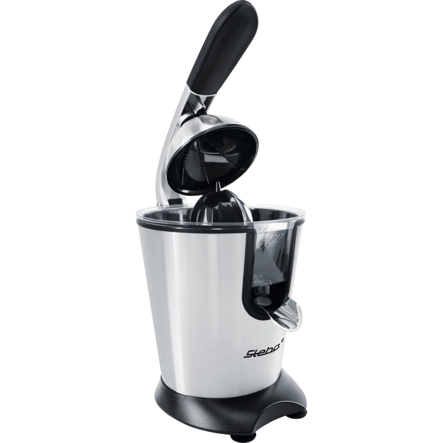 Die Steba ZP 2 besteht aus einem eleganten Edelstahlgehäuse und besitzt einen praktischen Hebel-Pressarm für eine optimale Saftausbeute. Neben einer Start / Stopp Automatik ist der Motor der ZP 2 besonders geräuscharm. Der Presskegel ist universell einstellbar und kommt somit auch mit unterschiedlichen Fruchtgrößen zurecht. Der Saftauslauf besitzt eine Stoppfunktion, dank des Edelstahlsiebs gelangen keine Kerne oder Fruchtfleisch in den Saft. Sämtliche Teile die sich abnehmen lassen sind spülmaschinengeeignet.